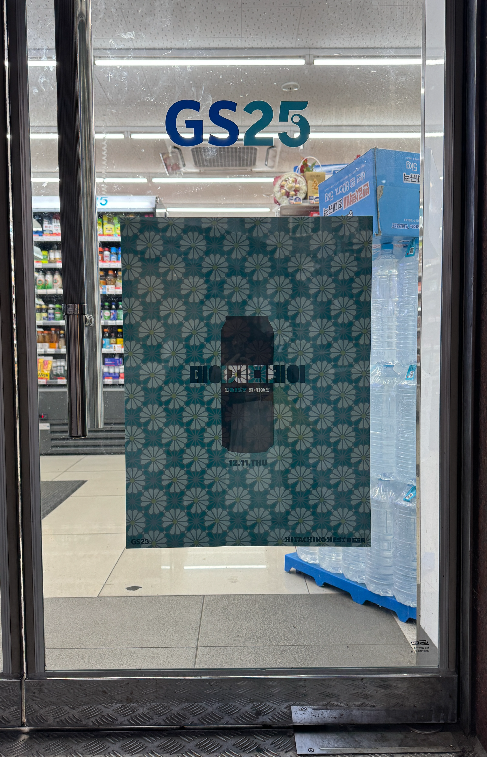 출시일인 12월 11일 바로 GS25 방문. 문에 포스터가 붙어 있다.