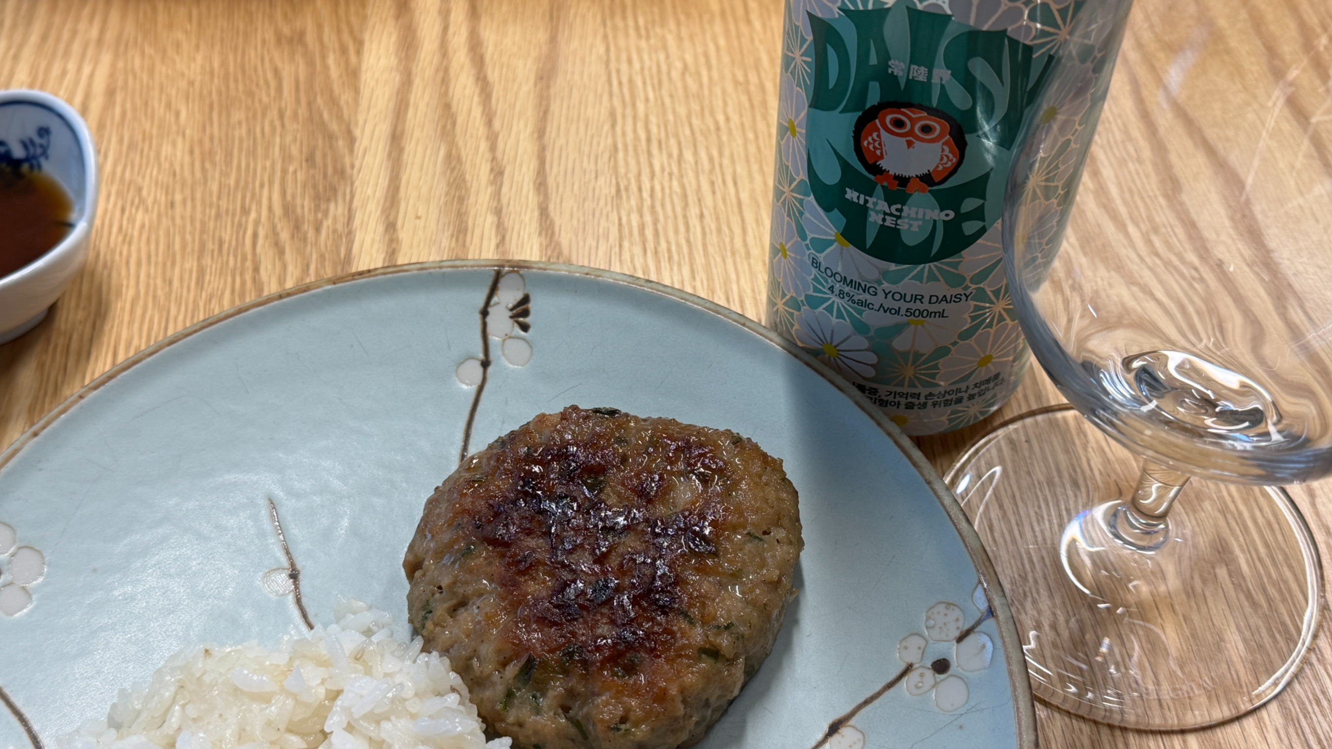 안주는 떡갈비. 일본식 함박 스테이크와는 살짝 다르지만, 그래도 제법 잘 어울리지 않을까 싶었는데 역시.
