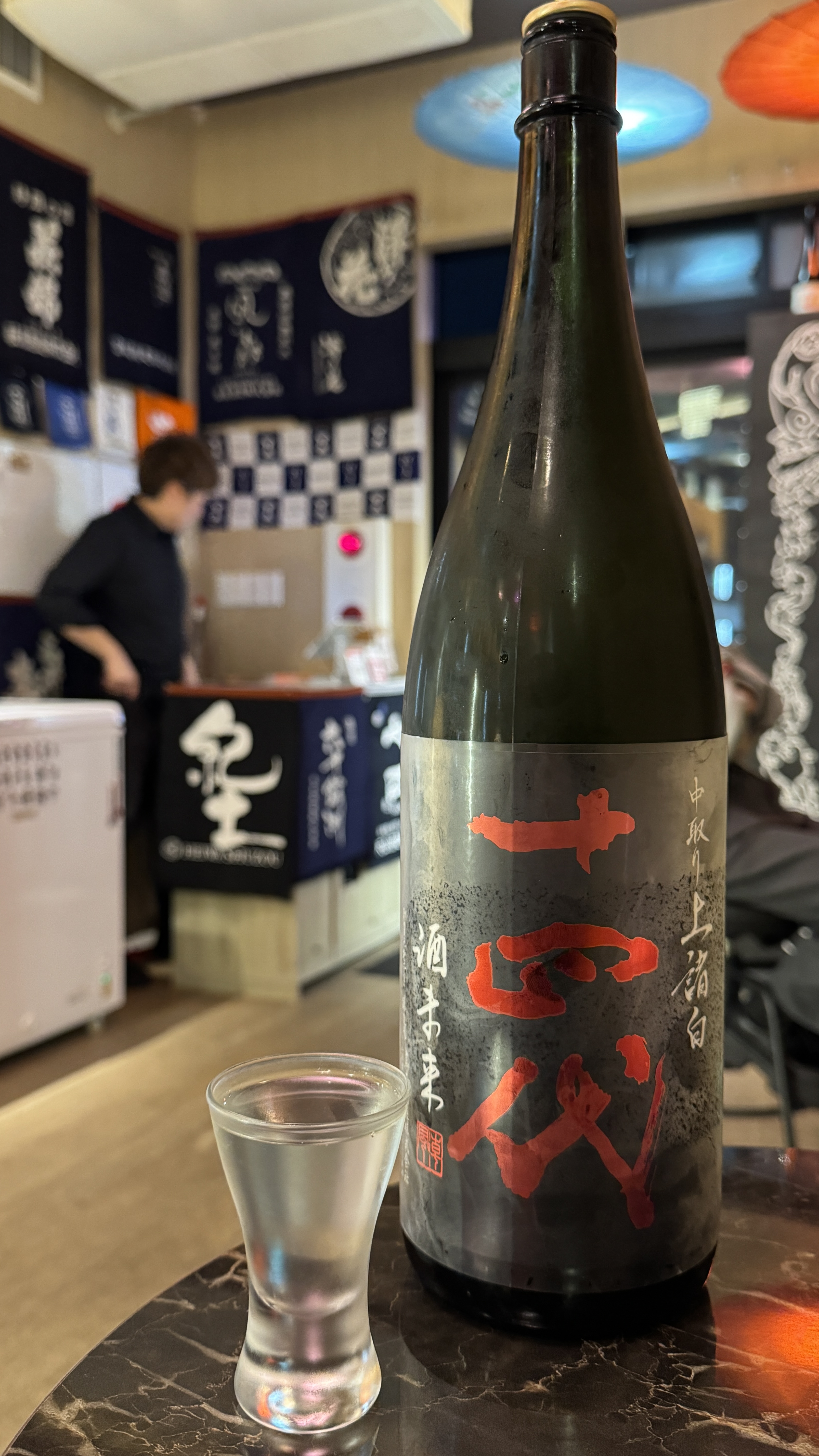 다음 잔은 기대하던 주욘다이(十四代). 생각 같아선 가장 비싼 걸 맛보고 싶었지만, 꿀 눌러 참고 그 다음 걸 주문했다.
