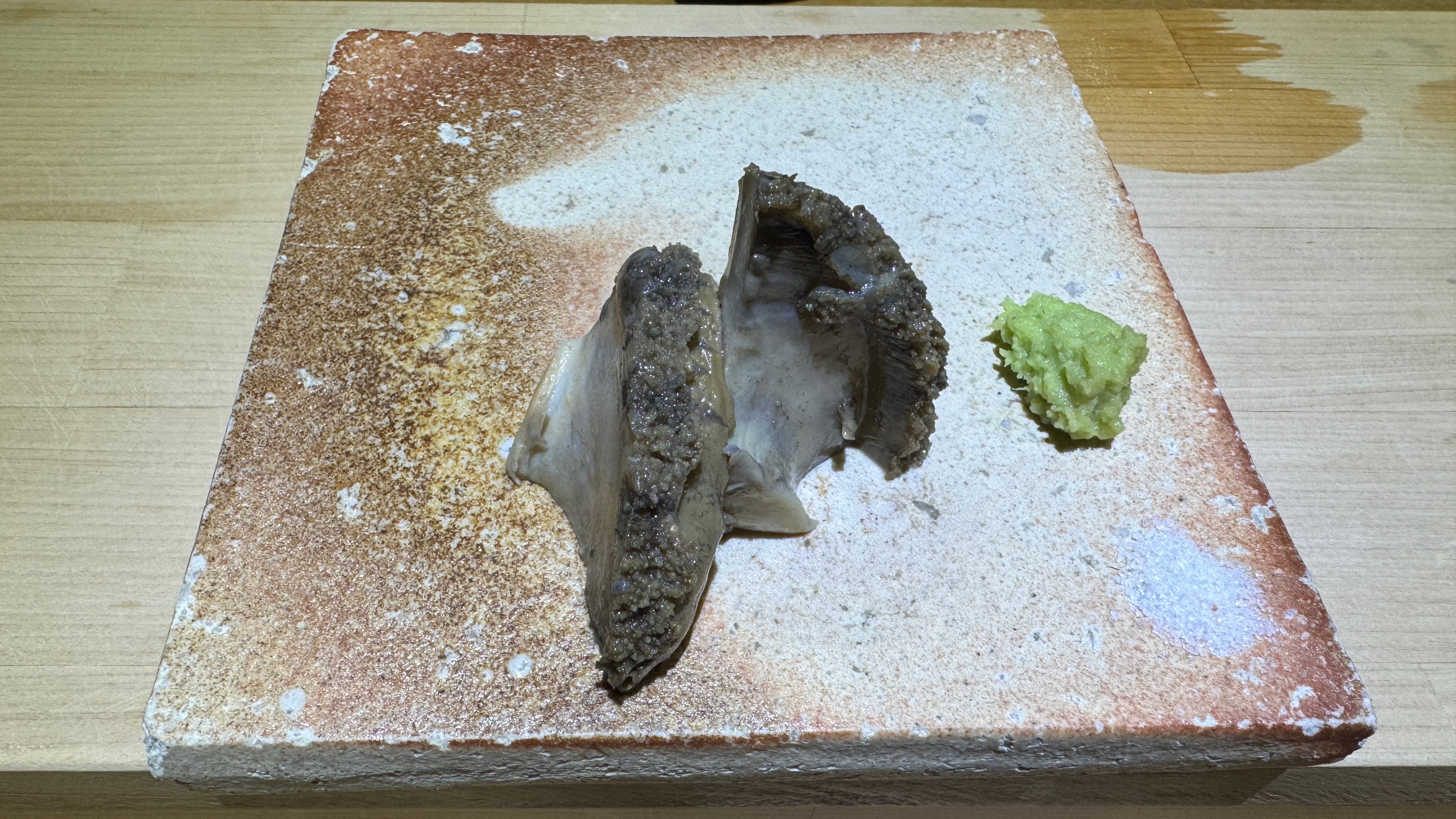 차완무시에 굴이 올라가 있다. 익힘 정도가 딱 생이 아닌 것을 막 벗어난 정도라 굴 풍미가 확연하게 살아 있다.