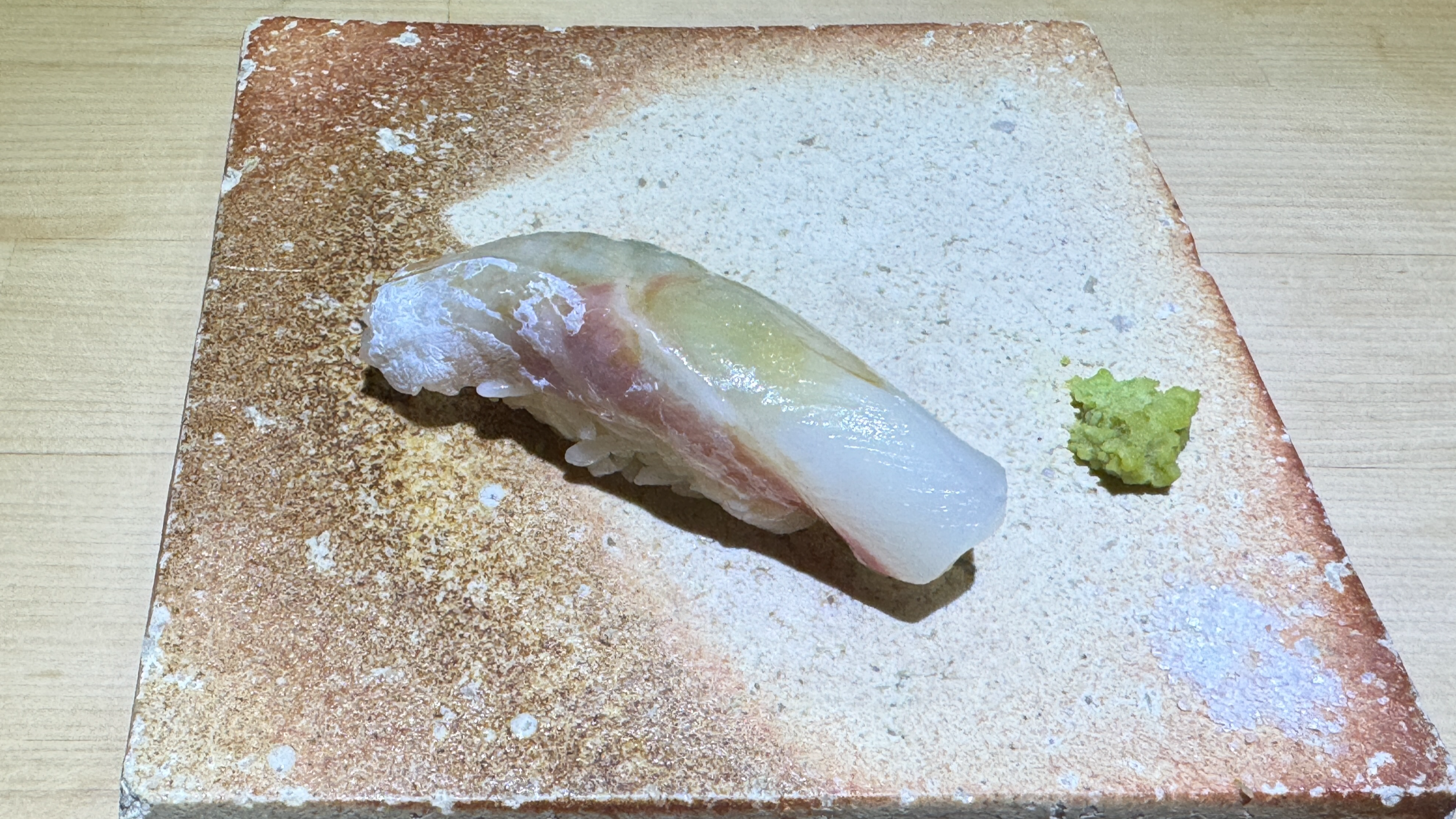 차완무시로 속을 채우고, 사케 스타트. 나마자케답게 미세한 버블이 도쿠리에 맺혀 있다. 칸키쿠 나마 특유의 부드럽고 유순한 질감, 향긋한 흰 꽃 향기와 시원한 배, 향긋한 백도 풍미가 깔끔하게 드러난다. 단맛은 제법 있는 것 같지만 과하게 들이대지 않으며, 밸런스가 좋아 알코올 또한 튀지 않는다. 레이블을 확인하기 전까지 알코올이 13~14% 정도라고 생각했을 정도.