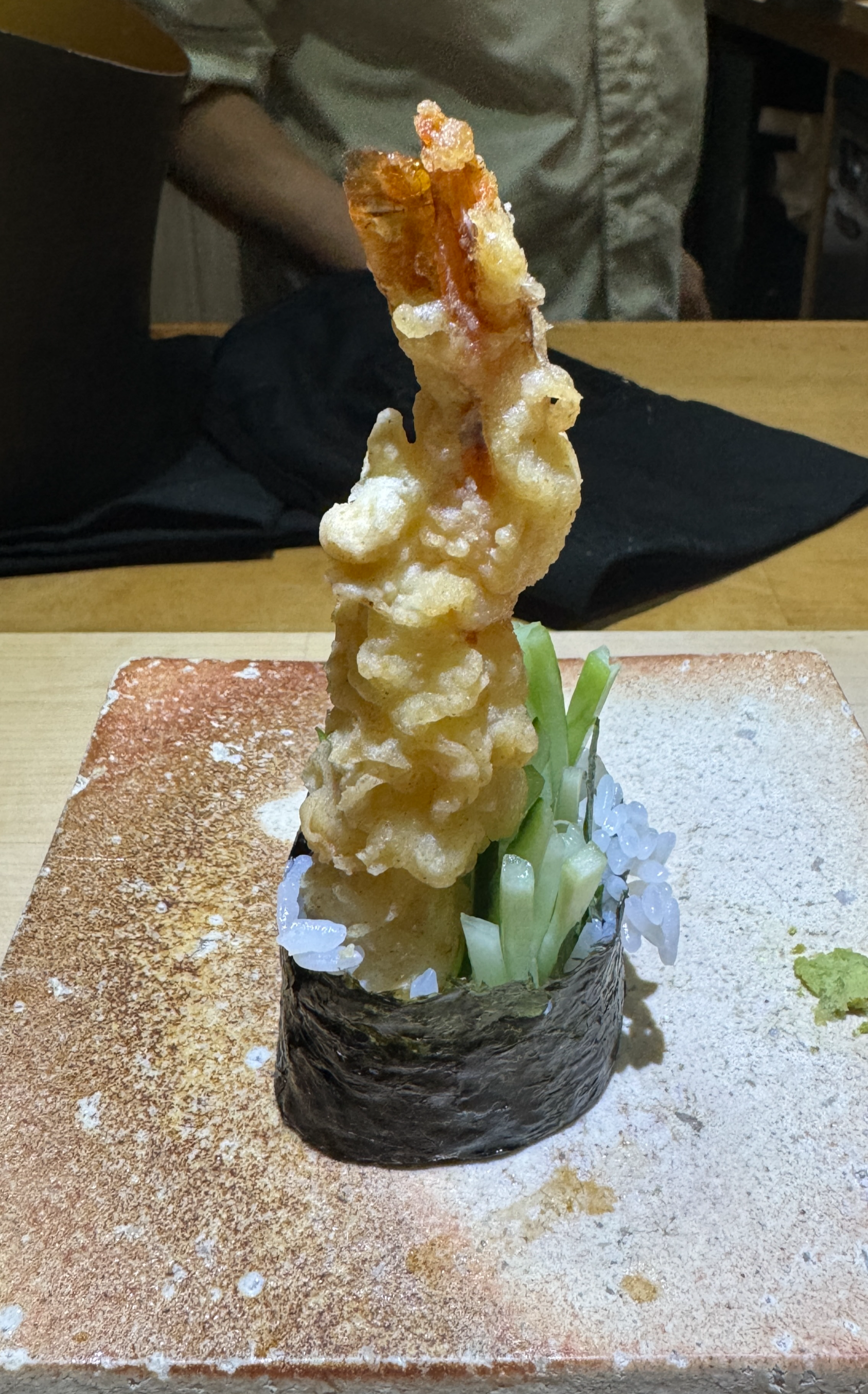 새우튀김 등장!! 이게 나오면 기쁘면서 슬프다. 코스의 마무리가 다가왔다는 의미이기 때문...