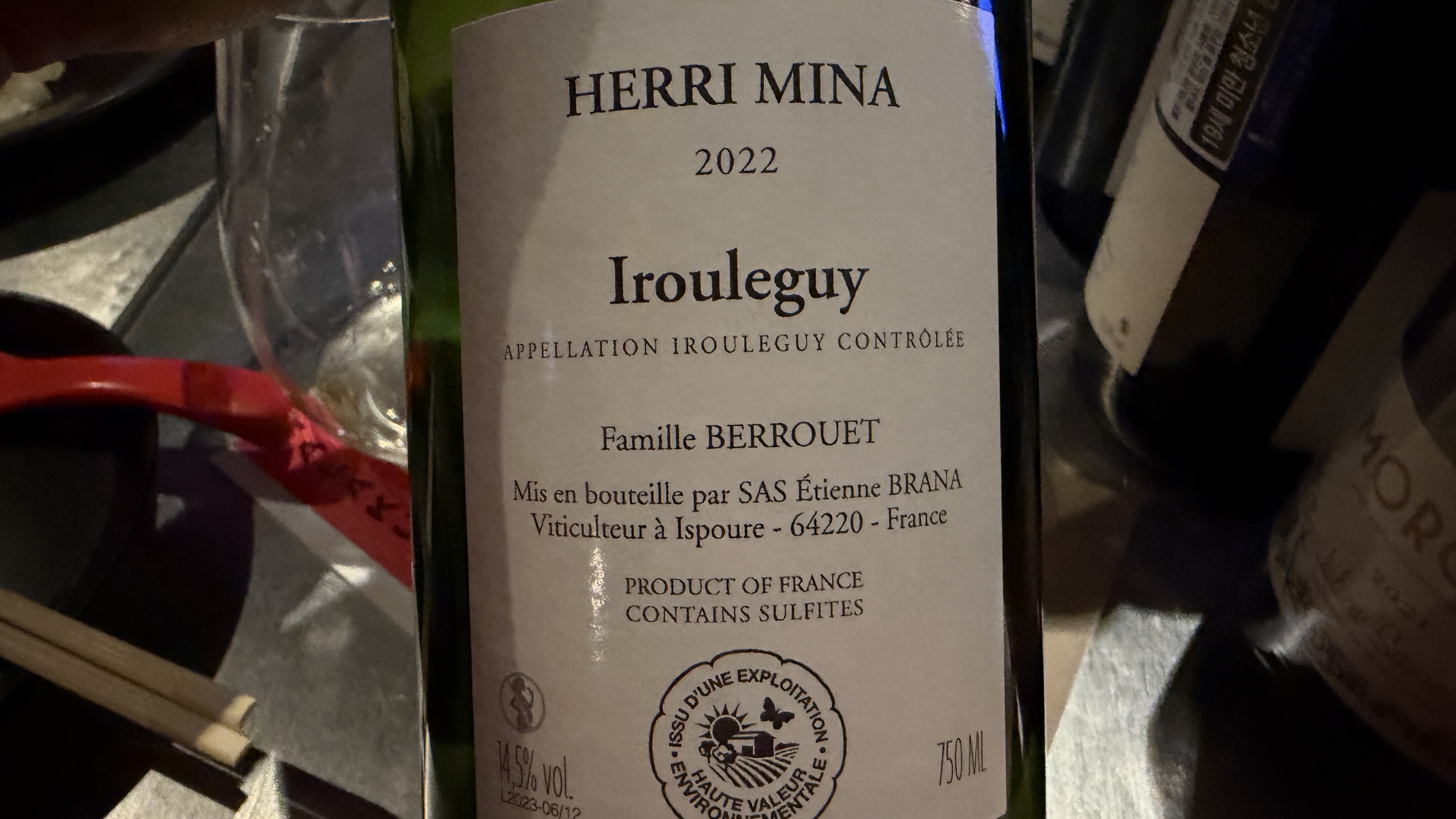 Herri Mina, Irouleguy Blanc 2022. 완숙 살구, 자몽의 상큼함과 쌉쌀함. 견고한 구조, 바디와 유질감. 전반적으로 흠잡을 데 없는 인상적인 화이트.