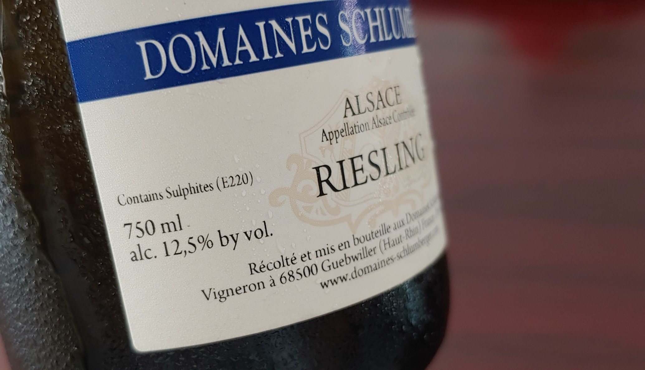 내용물 와인은 요거, 도멘 슐룸베르거 리슬링 레 프린스 아베. 도멘 슐룸베르거(Domaines Schlumberger)는 가성비 뿜뿜 생산자이고 레 프린스 아베(Les Princes Abbes)는 그들의 엔트리급 와인이다.