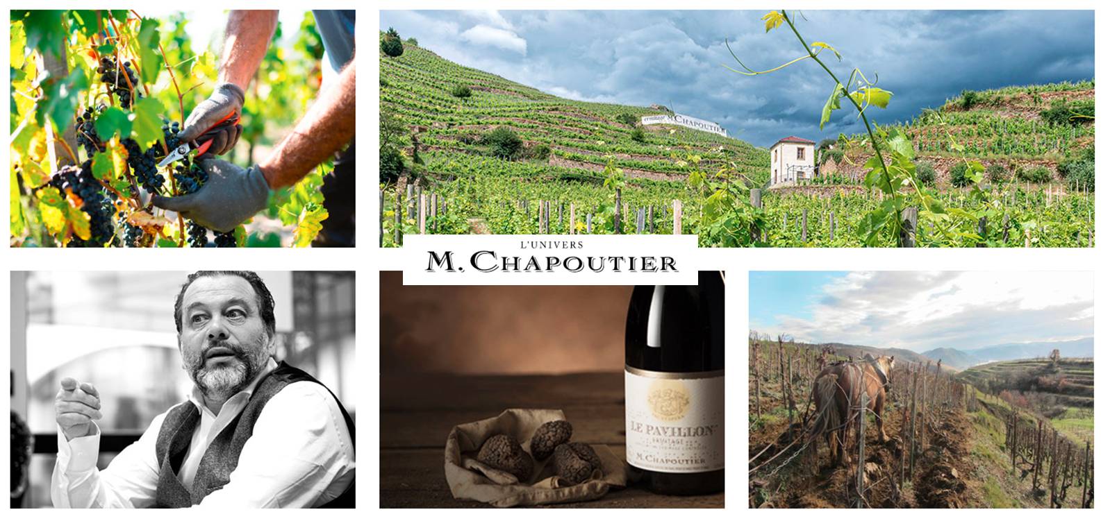 M. 샤푸티에(M. Chapoutier)는 E.기갈(E. Guigal)과 함께 론 밸리의 양대산맥으로 꼽히는 생산자. 둘 다 매우 다양한 와인을 생산하며 프리미엄 와인은 물론 엔트리급 와인도 아주 잘 만든다는 공통점이 있다. 한마디로 양적으로도 질적으로도 최고. 1808년 시작된 와이너리에 1897년 샤푸티에 가문이 참여했고, 1989년 현재의 미셀 샤푸티에(Michel Chapoutier)가 가업을 이으면서 그야말로 '품질 및 와인 생산 철학의 급격한 수직 상승'이 일어났다. 그의 와인들은 로버트 파커, 와인 스펙테이터 90점 이상의 단골 손님이고, 100점 만점을 받은 와인도 수십 가지에 달한다. 1990년대부터 보유한 모든 포도밭에 비오디나미 농법을 적용했다. 사회 공헌에도 관심이 많으며, 세계 최초로 레이블에 맹인을 위한 점자를 적용했다.