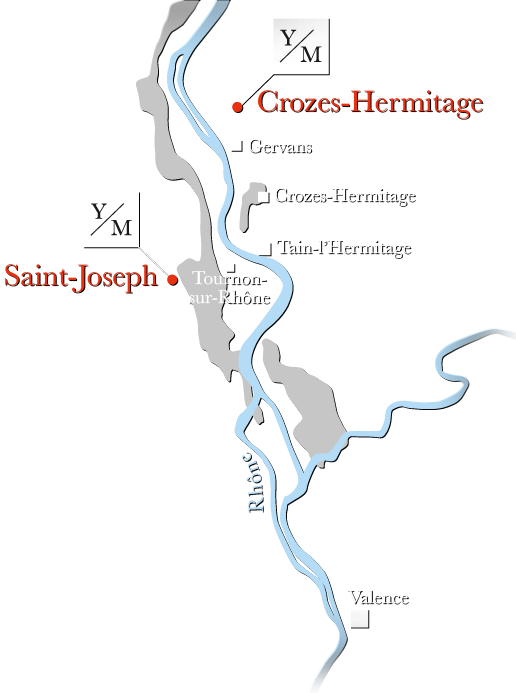 그러고 보니 투르농(Tournon)이라는 이름이 눈에 띈다. 그렇다. 호주에 설립한 도멘 투르농(Domaine Tournon)의 이름은 이 북부 론의 지명에서 따온 것이다. 아래 지도에서 보듯 론 강을 사이에 두고 탱 에르미타주 바로 건너편이 바로 투르농-쉬르-론(Tournon Sur-Rhone)이다.