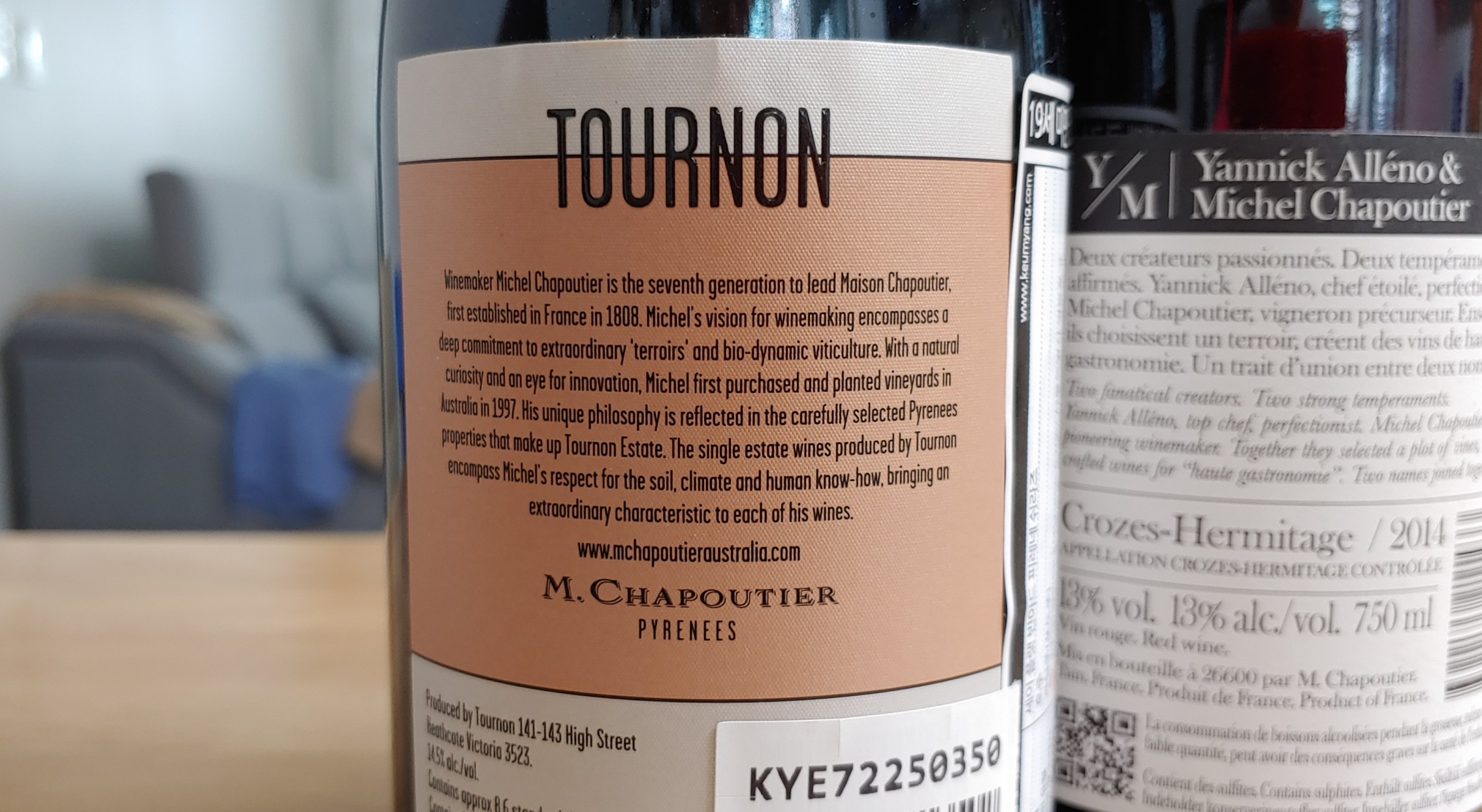 두 번째 와인은 미셀 샤푸티에가 야닉 알레노(Yannick Alleno)와 함께 만드는 와인. 야닉 알레노는 미슐랭 3스타를 받은 유명 프렌치 쉐프. 롯데 시그니엘 서울의 1스타 프렌치 레스토랑 '스테이'도 그의 이름을 걸고 있다. 미셀 샤푸티에와 야닉 알레노는 처음 만났을 때 부터 뜻이 통했다고 하는데, 의기투합한 그들은 2010년 투르농(Tournon) 지역에서 재배한 시라로 첫 와인을 출시했다. 이후 생 조셉(Saint Joseph)과 크로즈 에르미타주(Crozes-Hermitage)를 중심으로 파인 다이닝(haute gastronomie)를 위한 와인을 만들어오고 있다.