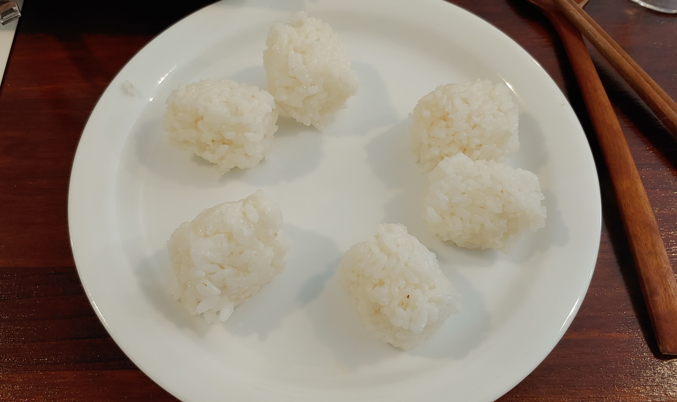 갓 지은 밥에 소금만 살짝 넣어서 만든 작은 주먹밥.