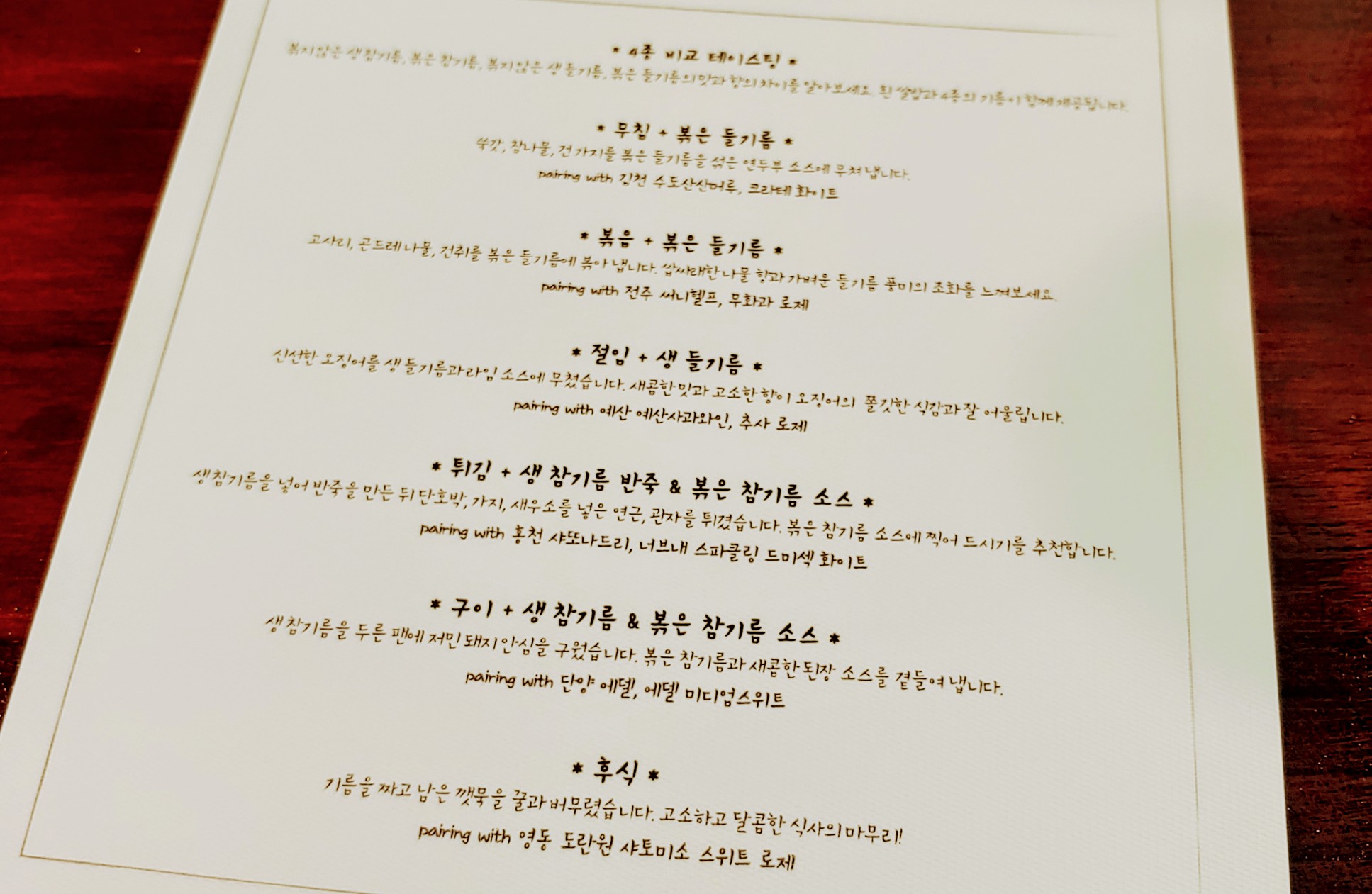 우리가 평상시에 자주 먹는 참기름, 그리고 들기름. 누구에게나 익숙할 이 기름이 왜 페어링의 주제가 된 걸까?