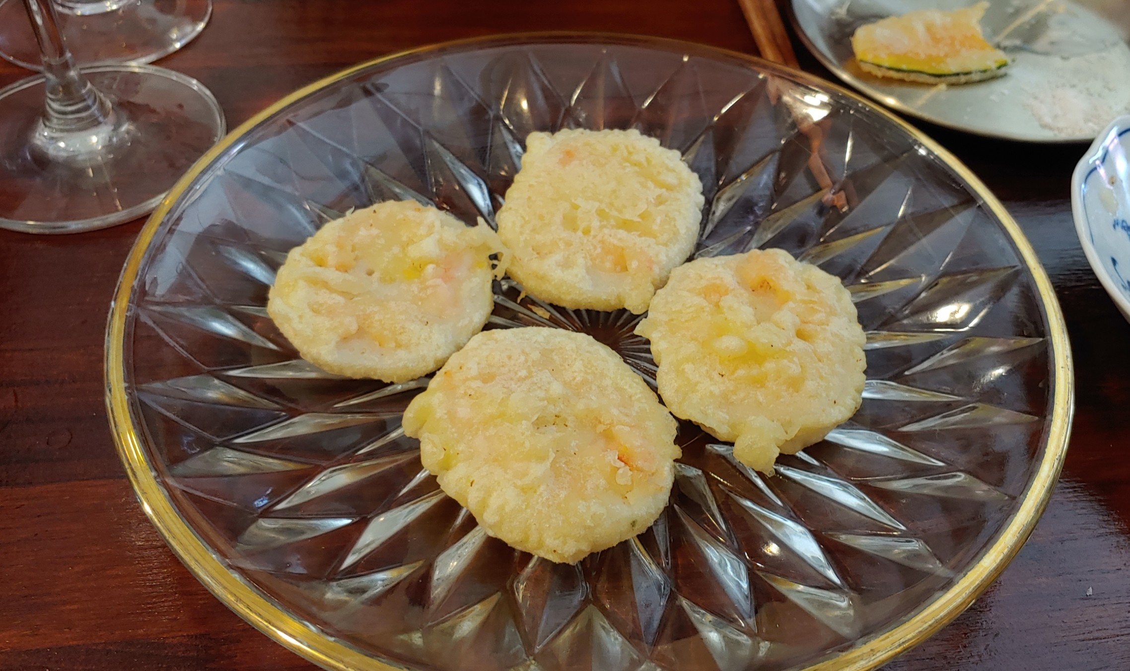 연근 구멍에 다진 새우를 넣어 튀겼다. 그 정성때문에라도 맛이 없을 수가 없는 요리.