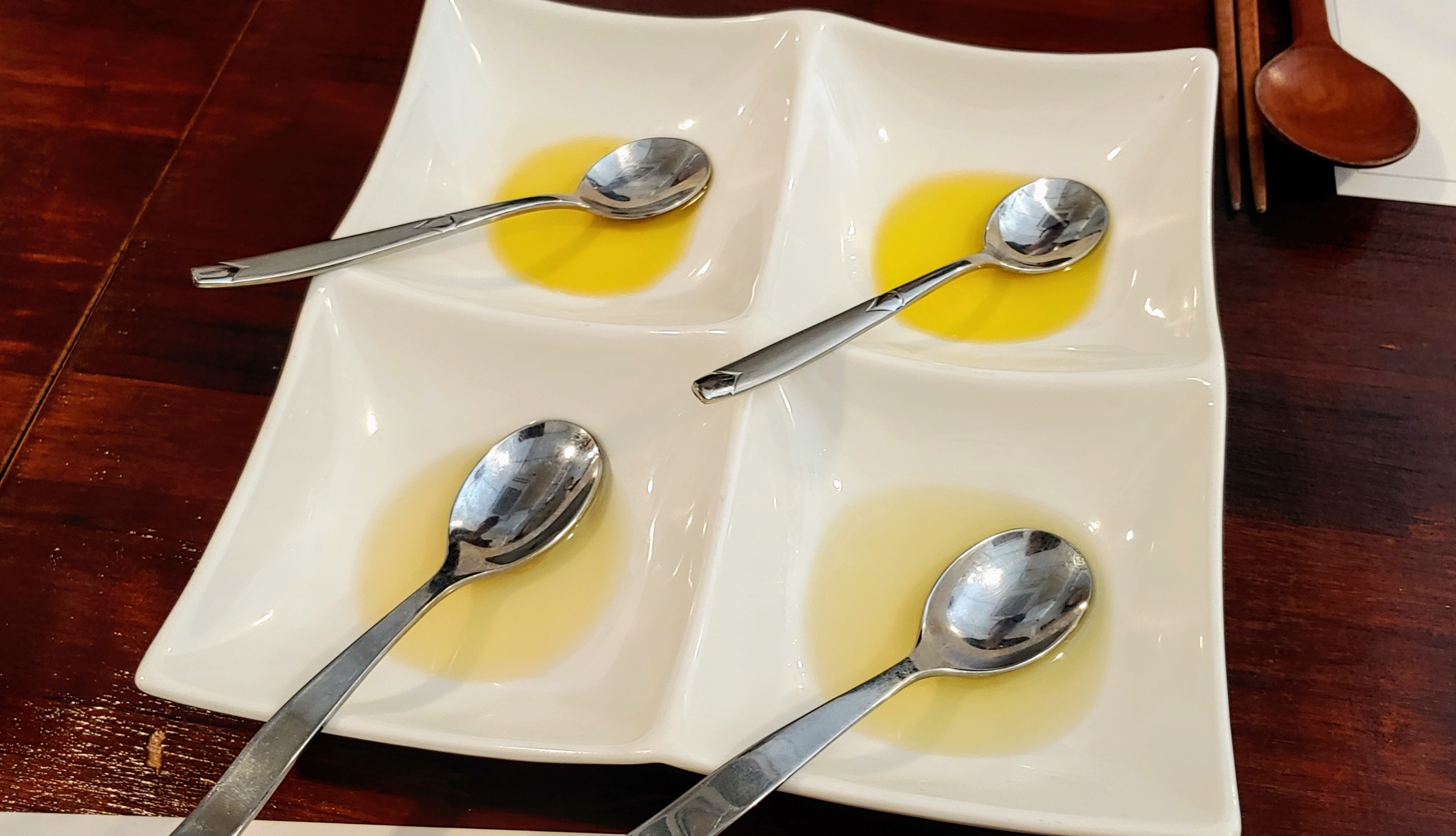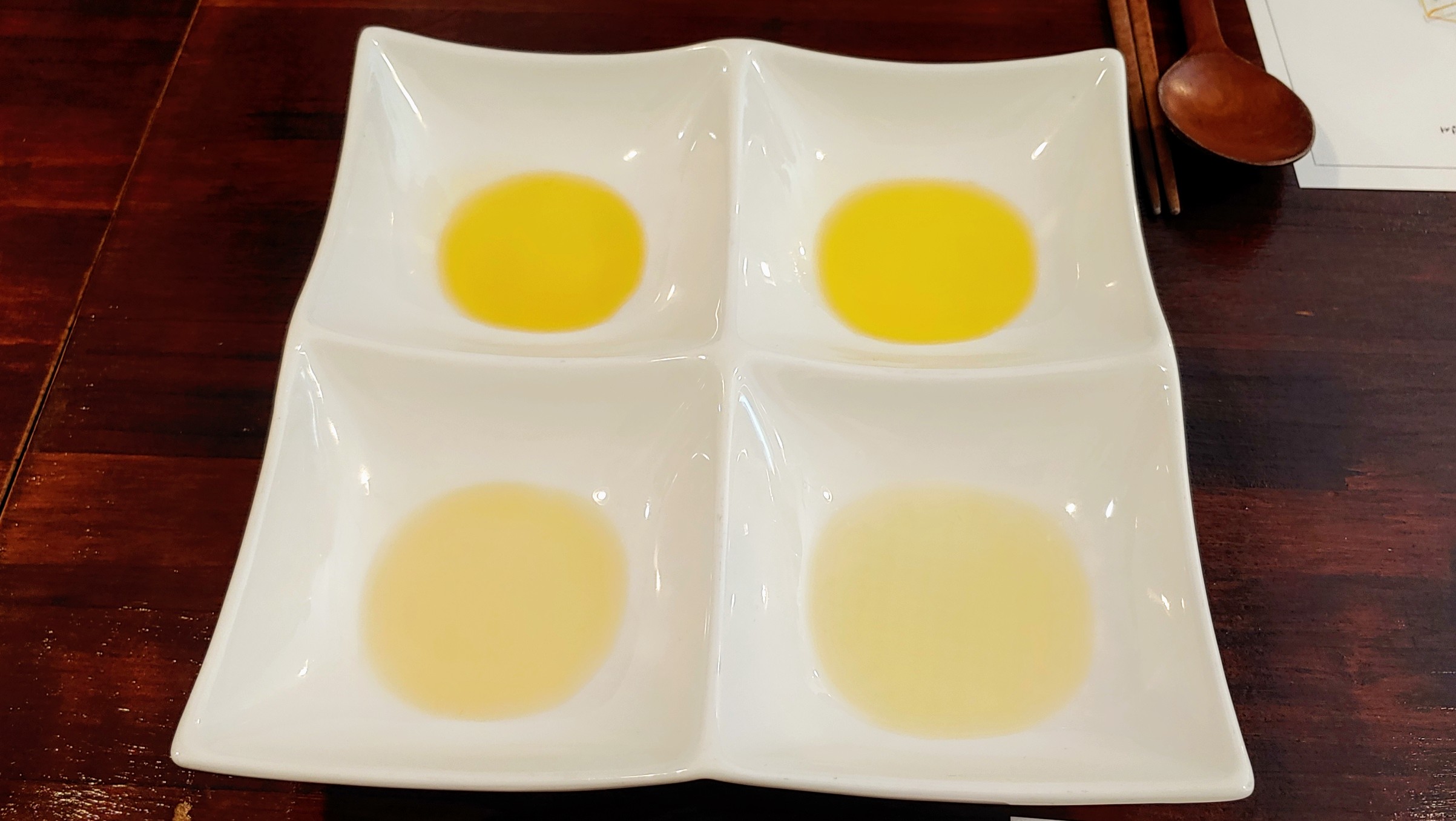 가장 먼저 먹은 생참기름은 향긋한 내음과 함께 고소함이 살짝 감도는 풋풋하고 방순한 인상이었다. 참기름이 원래 이렇게 순수한 느낌이었나 하고 놀랐을 정도. 살짝 볶은 참기름은 살짝 감돌던 고소함을 배가시키는 동시에 스모키 '힌트'를 더했다. 반면 들기름은 편안한 구수함이 화사하게 퍼지며 입안에서의 유질감과 풍미가 더 두툼했다. 볶은 참기름은 그 구수함이 더 피어나기보다는 단단하게 뭉치는 느낌이다.