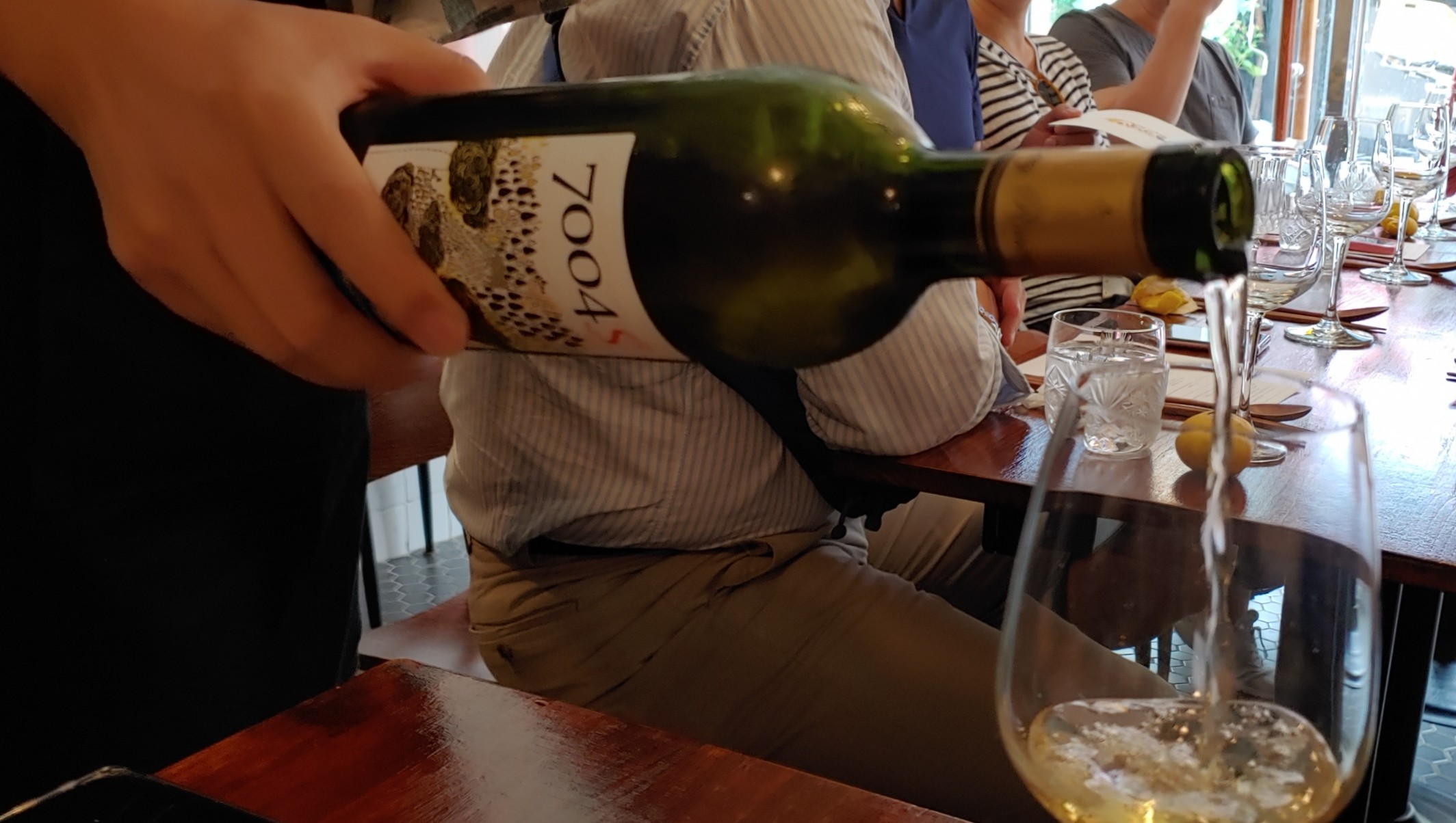 참석자가 모두 도착하기를 기다리며 리스트에 없던 와인을 서빙해 주셨다. 참다래(≒키위)로 만든 '7004S'라는 와인인데 은근한 단맛과 강하지 않은 신맛이 편안했다. 막 들어와 자리에 앉은 상태에서 당분 보충을 하니 피로가 풀리는 느낌. 알코올 함량 8%.