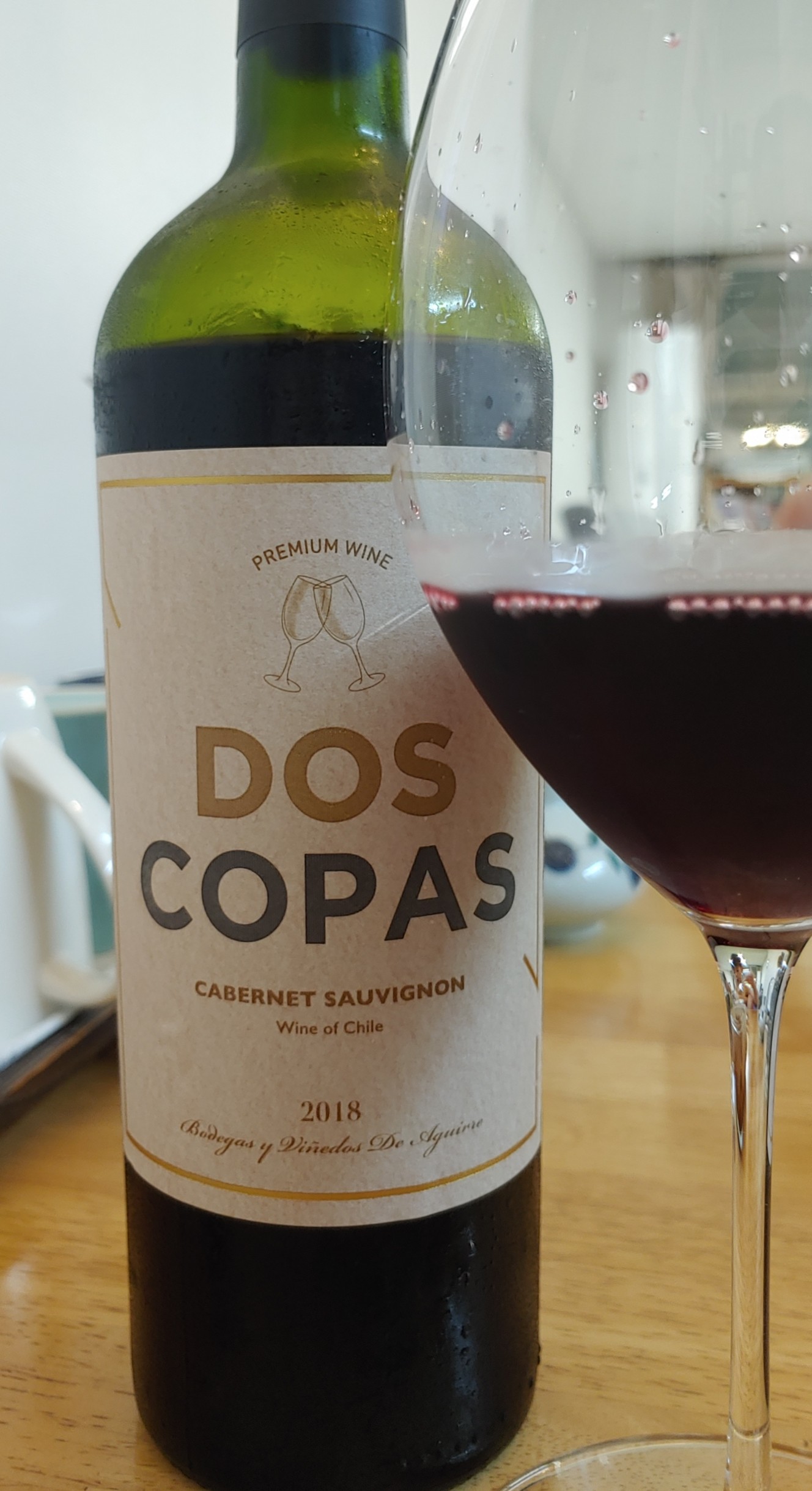 흰색 레이블의 도스 코파스 카베르네 소비뇽 말고 검은 레이블의 레드 블렌드 와인도 있는데, 그건 스페인 와이너리에서 템프라니요(Tempranillo)와 가르나차(Garnacha)를 블렌딩하여 만든다고 한다. 기회가 된다면 나중에...