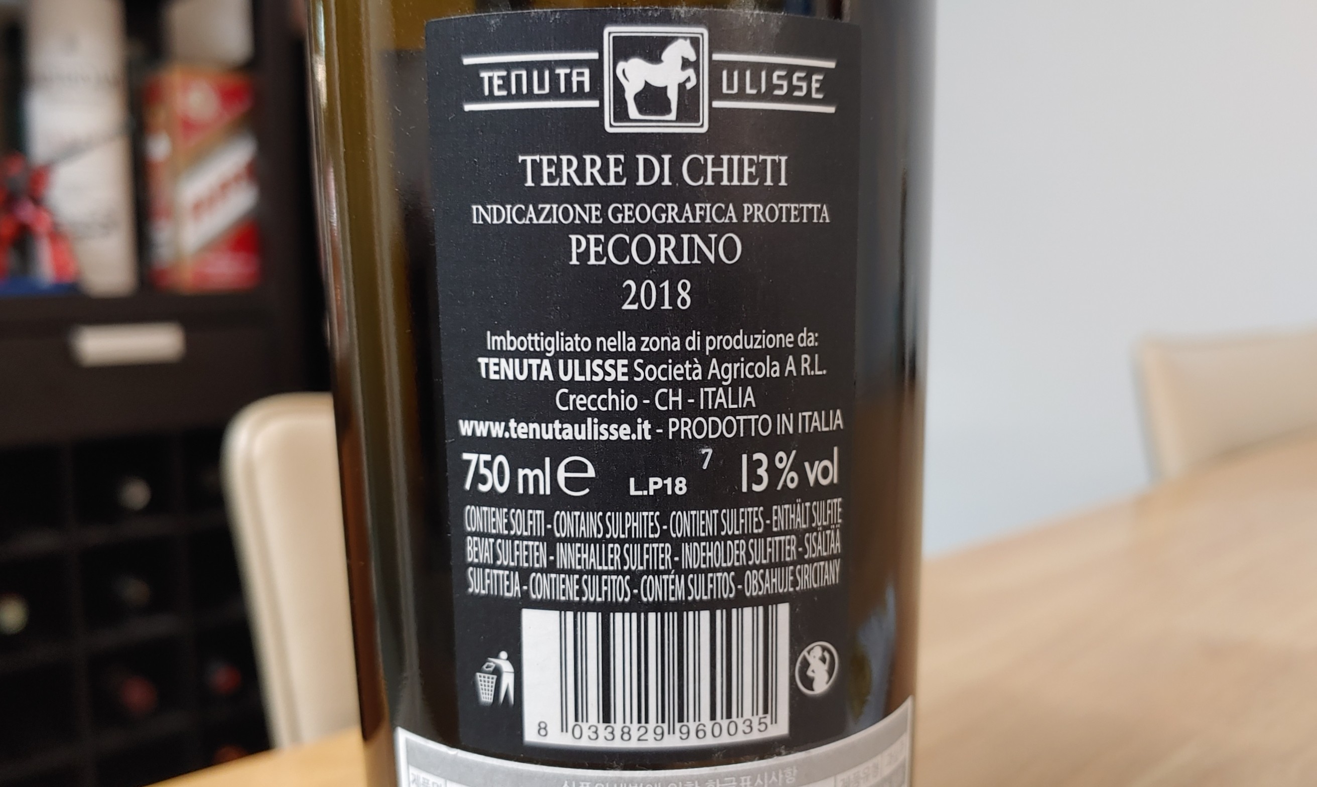 테레 디 키에티(Terre di Chieti) 또한 아부르쪼 지역에 허용된 IGP로, 허용된 품종 중 한 품종으로 85% 이상 사용하면 레이블에 품종명을 표기할 수 있다. 테누타 울리세 페코리노는 페코리노 100%로 양조한 듯.