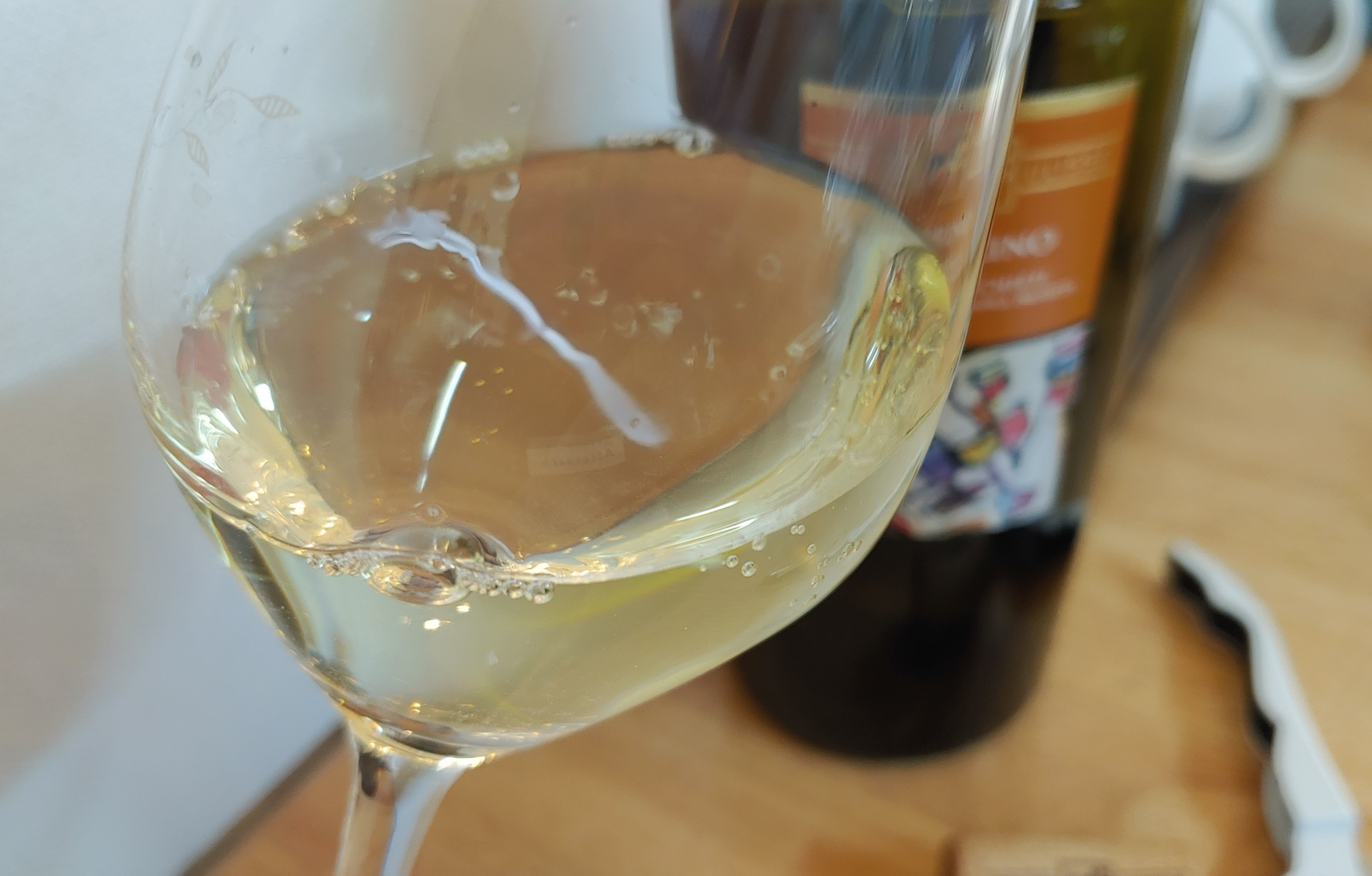 옅은 레몬색 컬러 약간의 버블이 보이지만 이상은 아닌 듯. 코를 대니 상쾌한 시트러스와 열대 과일이나 백도 같은 달콤항 향이 매력적으로 피어난다. 입에서는 상큼한 사과와 서양배, 감귤 풍미. 과일 자체의 단맛과 부담 없는 신맛이 좋은 균형을 이루는 미디엄 바디 와인으로 가볍고 신선한 인상이 아주 좋다.