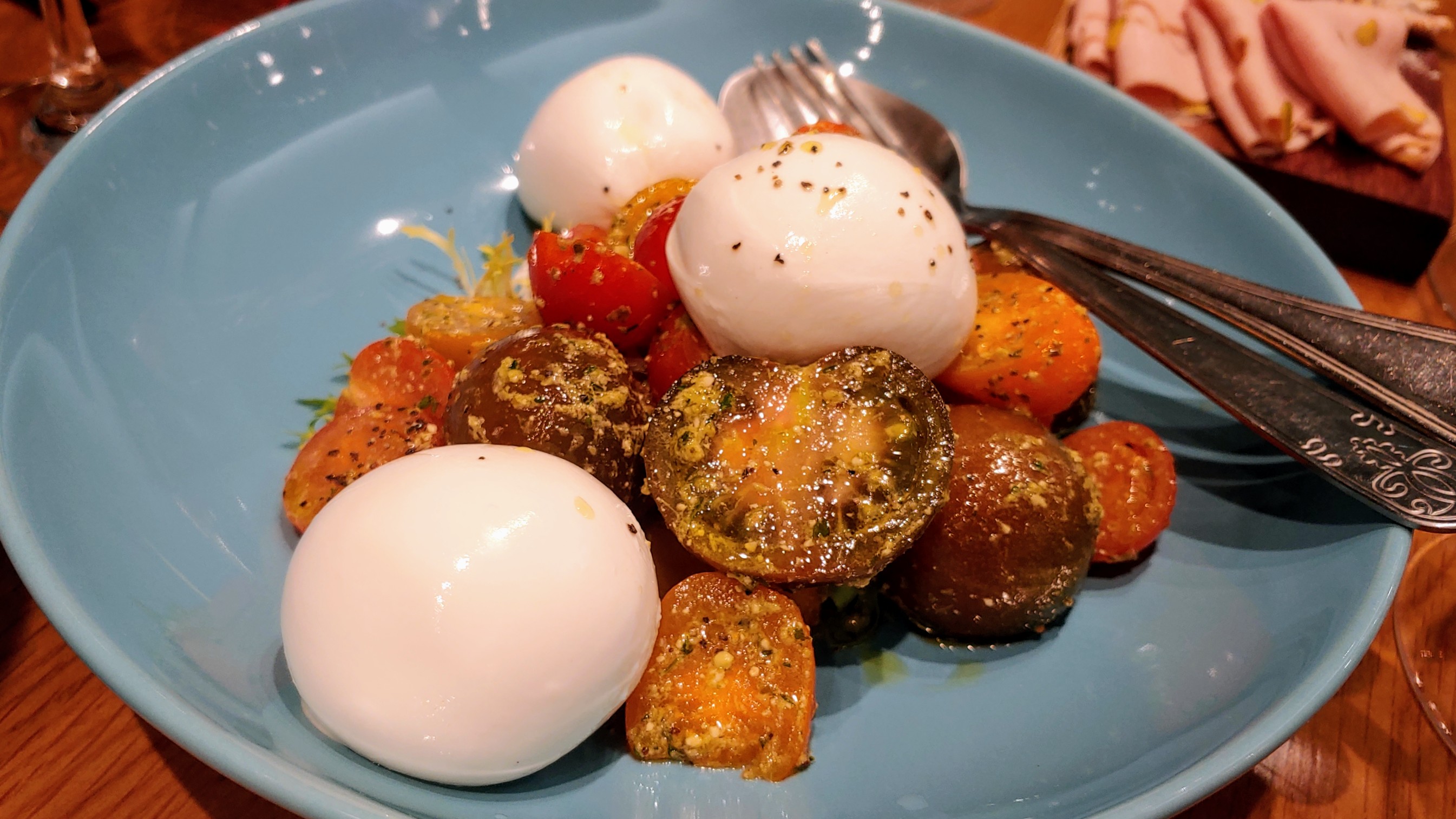 부라타 치즈를 곁들인 토마토 샐러드.