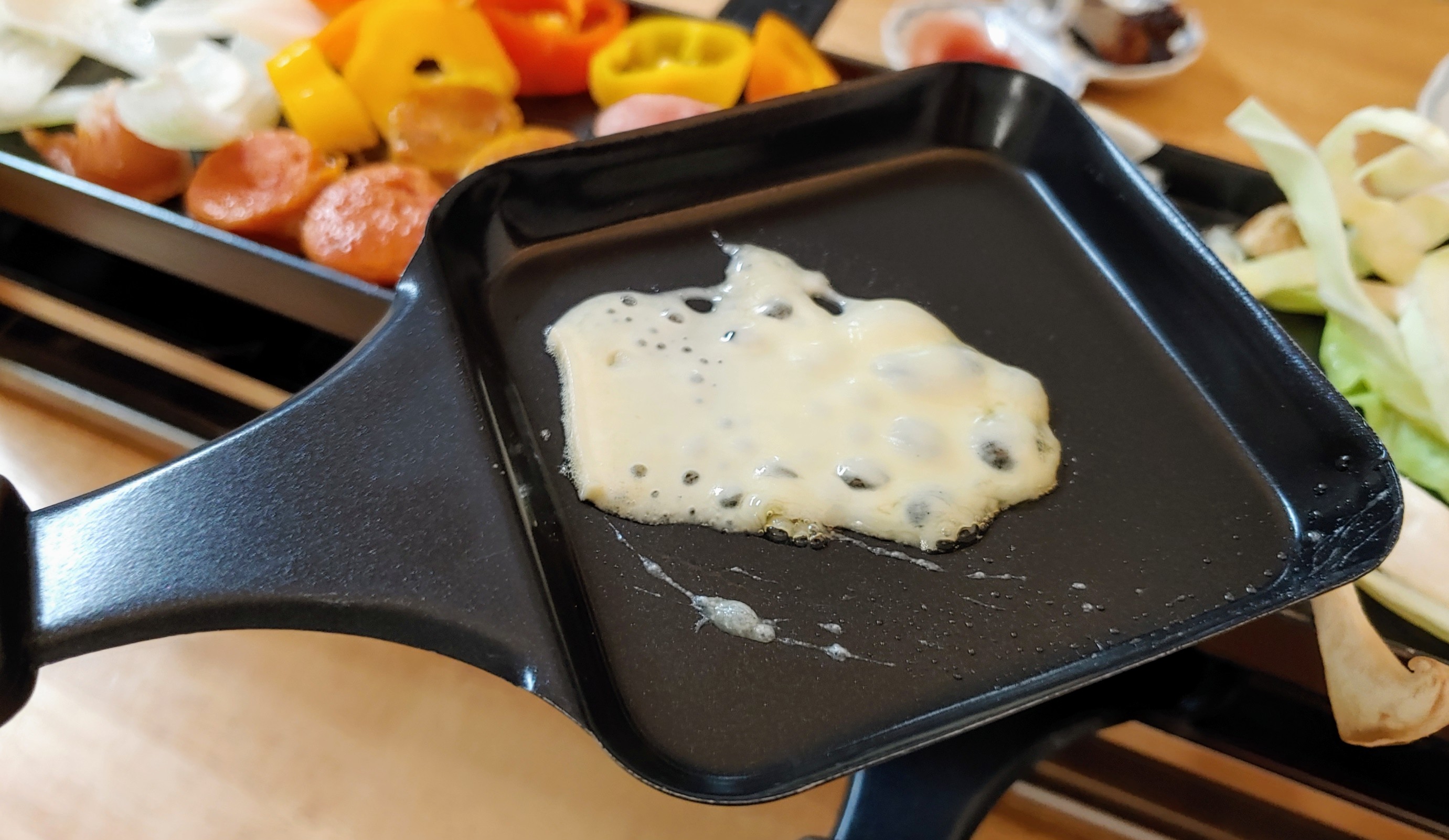 각종 야채와 소시지를 내키는 대로 곁들여 먹으면 된다. 샤부샤부의 드라이(?)한 서양식 치즈 버전이랄까. 와인쟁이에게 샤부샤부보다 라끌렛 그릴이 좋은 점은 바로,
