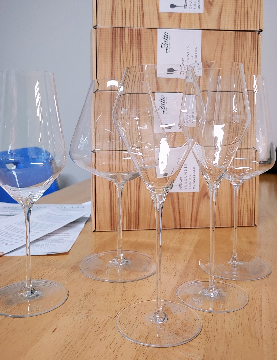 딱 2년 전 이맘때 쯤 보르도 레드, 화이트, 그리고 스위트 와인용 글라스를 샀었다. 부르고뉴 글라스는 나중에 친친에서 따로 산 듯. 글라스를 잘 안 깨는 편인데 이상하게 잘토 글라스만 남아나질 않는다. 너무 얇아서 잘 깨어진다기보다는 이상하게 떨어뜨리거나 툭 쳐서 넘어져 깨지는 등 영 운이 안 좋은 경우랄까.
