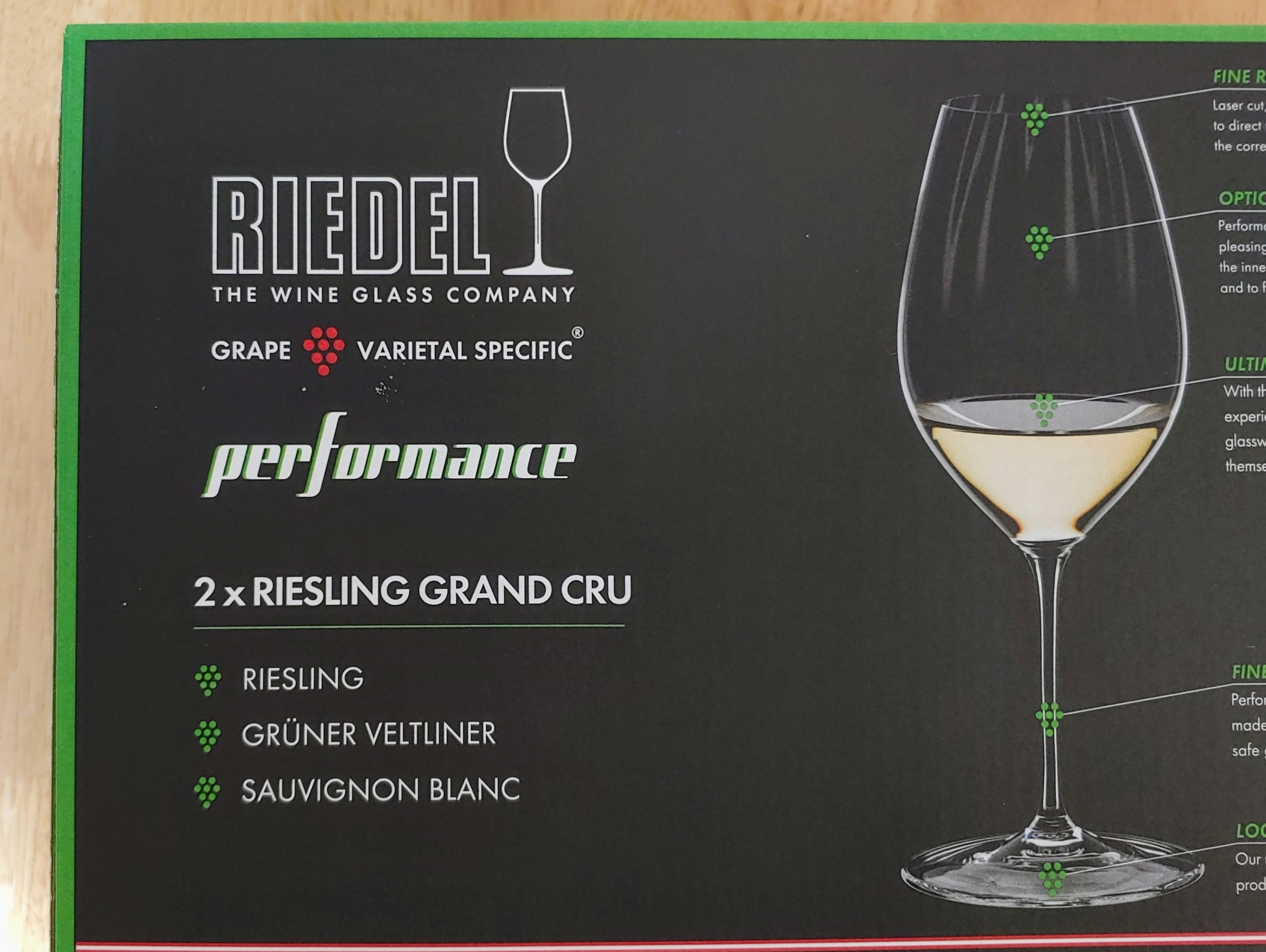 리슬링 글라스인데 제법 크다... 싶었는데 뒤에 '그랑 크뤼(Grand Cru)'라는 표현이 붙어 있다. 권장 품종은 리슬링, 그뤼너 펠틀리너(Gruner Veltliner), 그리고 소비뇽 블랑.