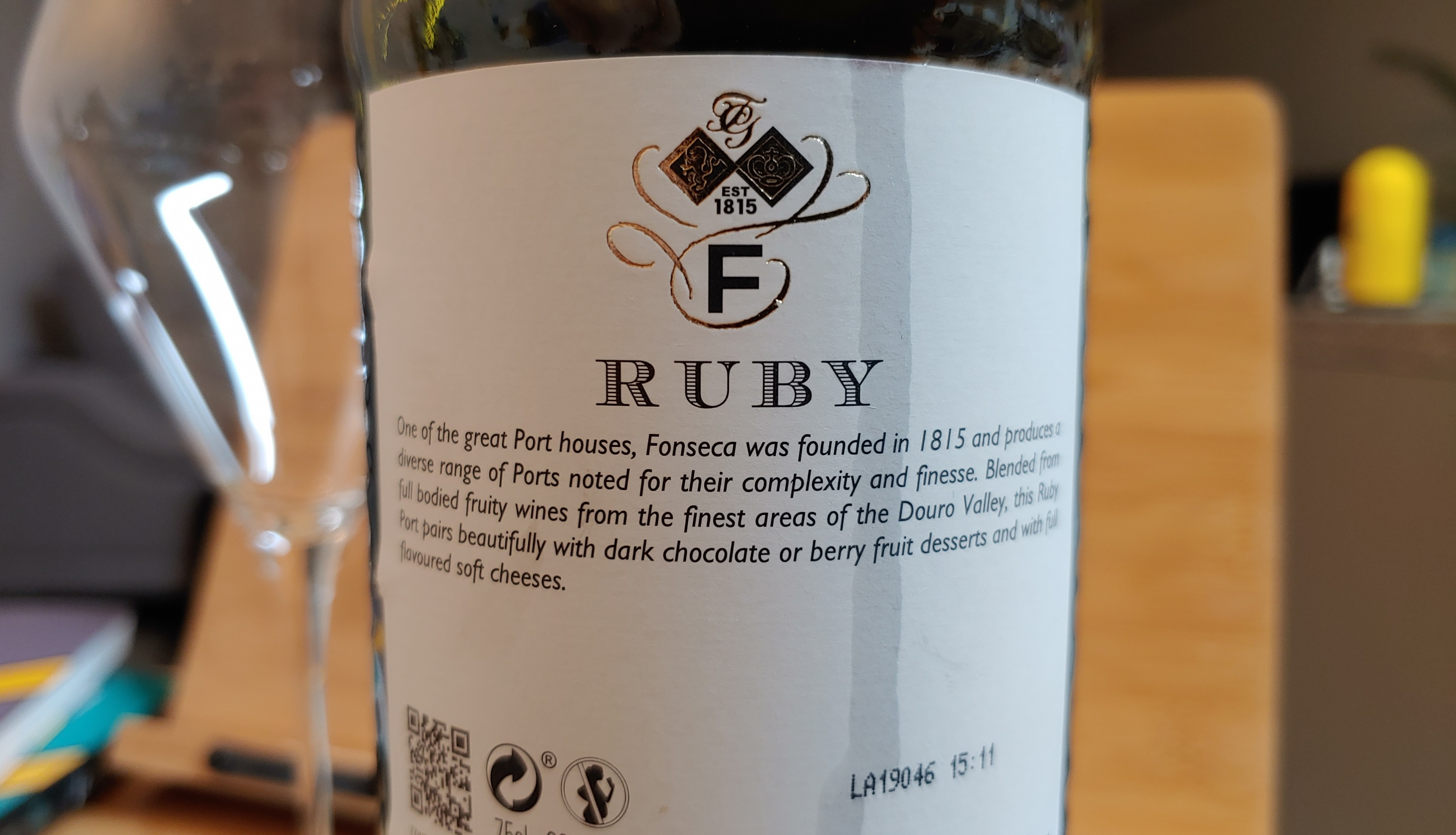 딱 한잔 부족하거나, 술이 땡기지만 많이 마시기 애매한 상황일 때 적당한 와인, 바로 주정강화 와인이 아닐까... 라고 생각하며 초콜릿 한 조각 놓고 루비 포트를 열었다.