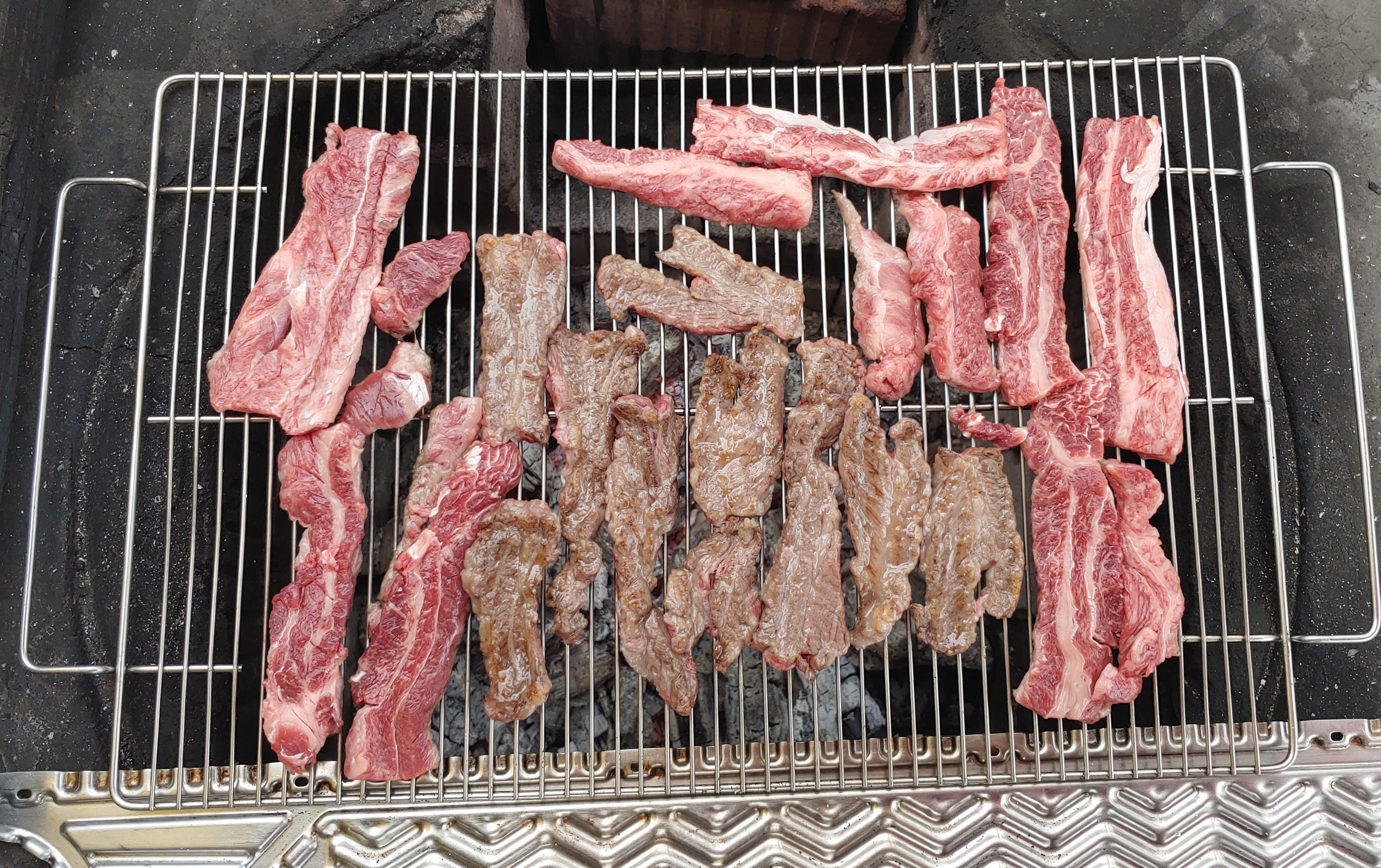 바로 요거! 소화 잘 되는 고기♥ 부모님 댁 한편에 화덕이 있어서 고기 굽기가 참 좋거든요^^;; 마음 같아서는 매주 가서 고기를 굽고 싶다는... 고기 사서 도착하자마자 판을 벌립니다.