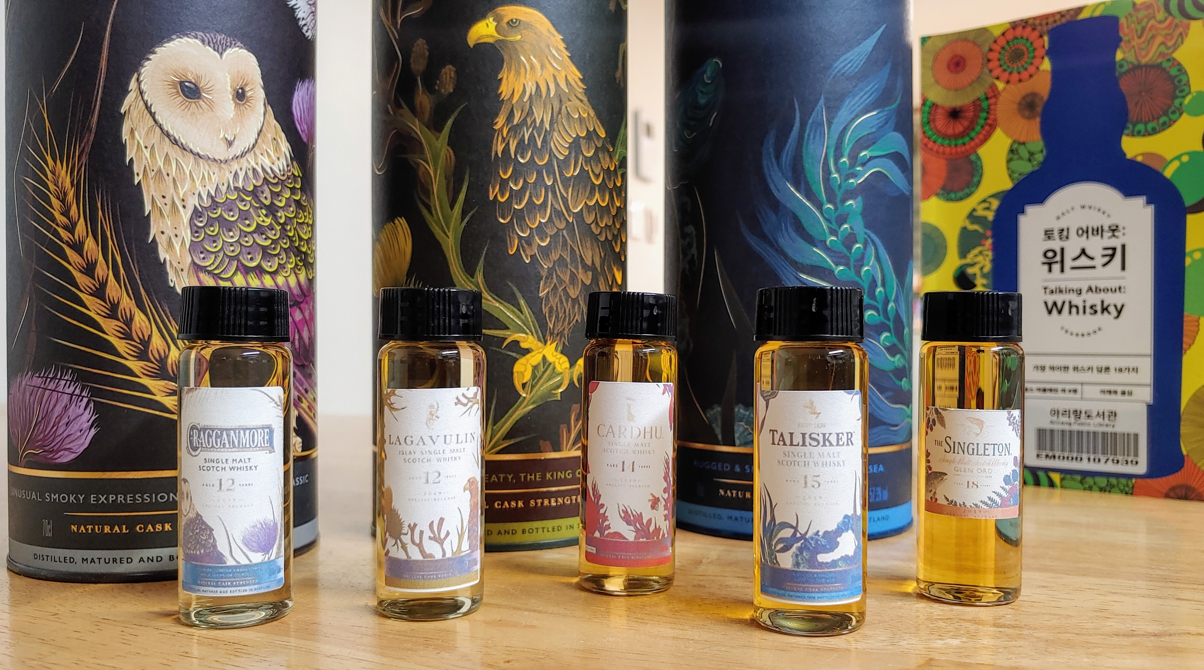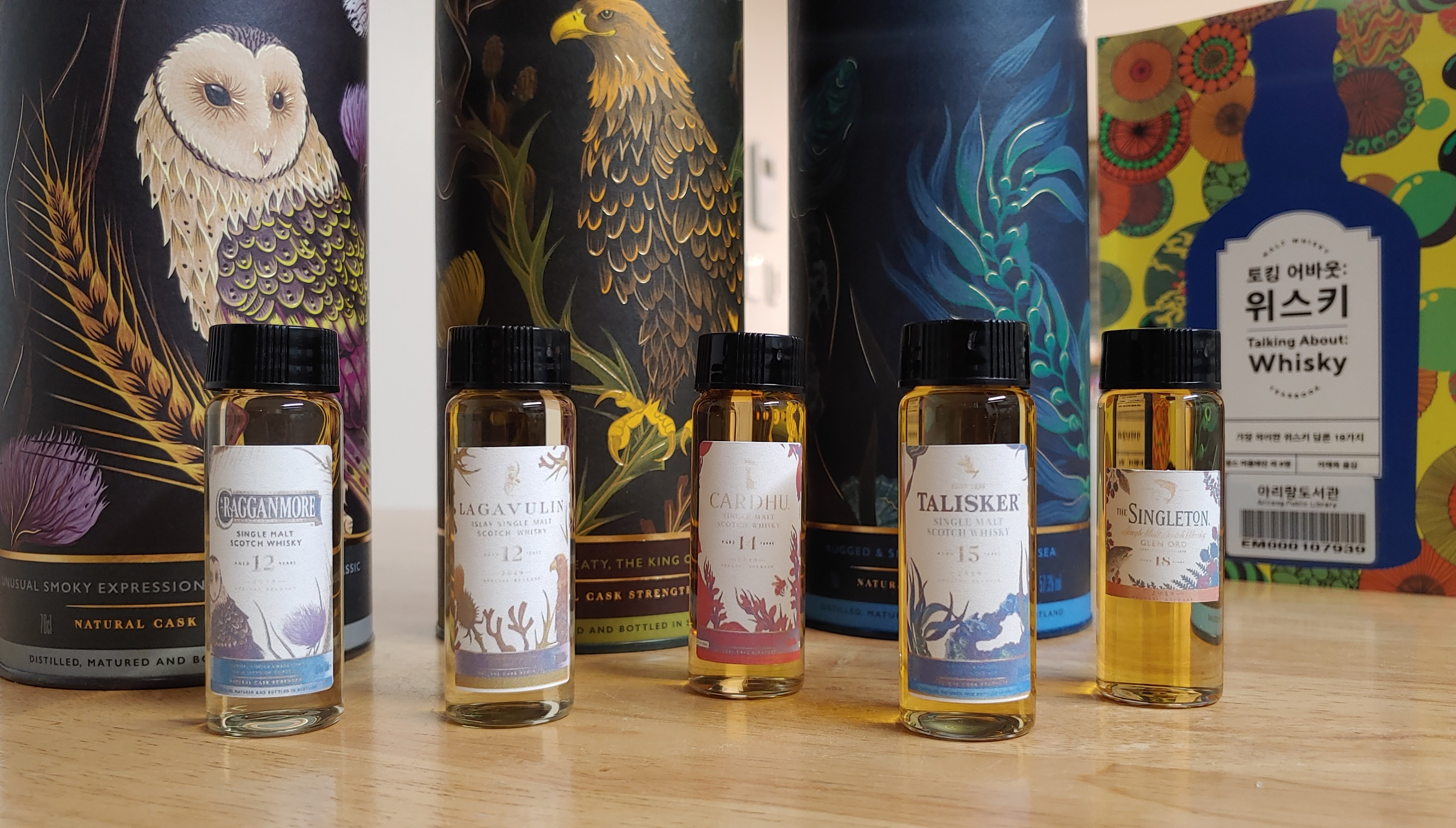 그러니 요로코롬 좋은 기회를 놓칠 순 없지♥ 카듀는 물론 싱글톤 18년(Singleton of Glen Ord aged 18 years)까지 맛볼 수 있었던 온라인 시음회. 5종 세트 외에 고숙성 위스키인 피티베익 29년(Pittyvaich aged 29 years)과 달위니 30년(Dalwhinnie aged 30 years)이 포함된 7종 풀세트도 있었지만... 그건 가난한 직장인에게 어울리지 않는 가격ㅜㅜ