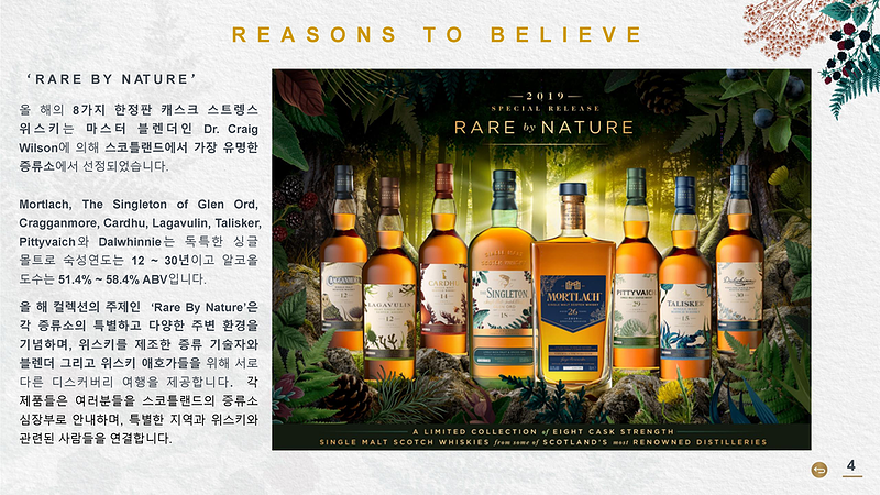 어쨌거나 스페셜한 스타일을 갖춘 디아지오 2019 스페셜 릴리즈. 조만간 2020 출시 예정이라던데 그녀석들도 레이블 디자인이 기대가 된다. 총알을 모아야겠군... 매년 마음에 드는 걸로 한1~2병 쯤은 사지 않을까.