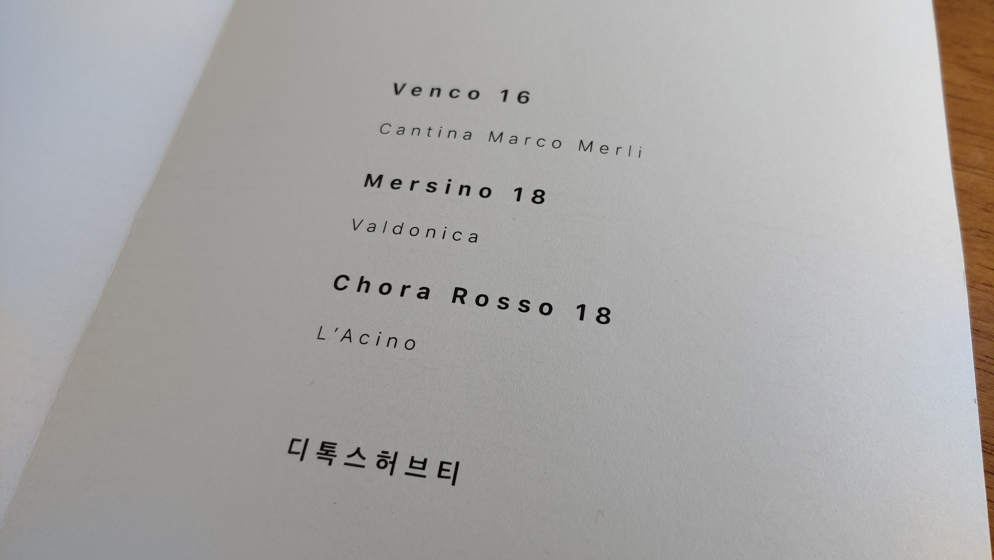 첫 번째 페어링 와인, 칸티나 마르코 메를리(Cantina Marco Merli). 이탈리아 움브리아 주 페루자 부근에 위치한 와이너리로 비오디나미와 내추럴 생산 방식을 적용해 와인을 만든다고.