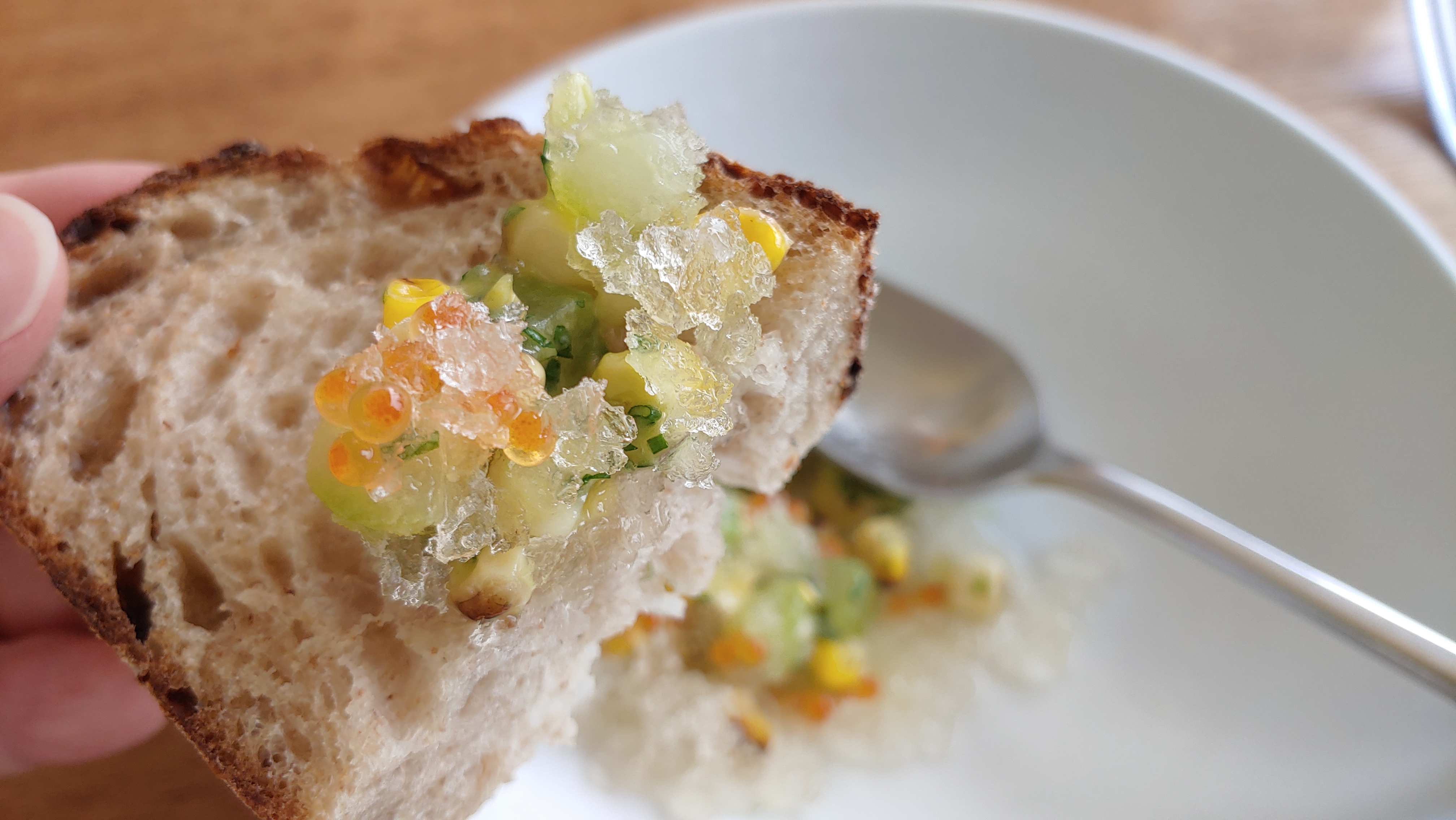 빵에 올려 먹으면 또 별미다. 설컹설컹한 얼음인 그라니타를 빵 위에 올렸는데 이렇게 잘 어울리리라고는 생각도 못했음.