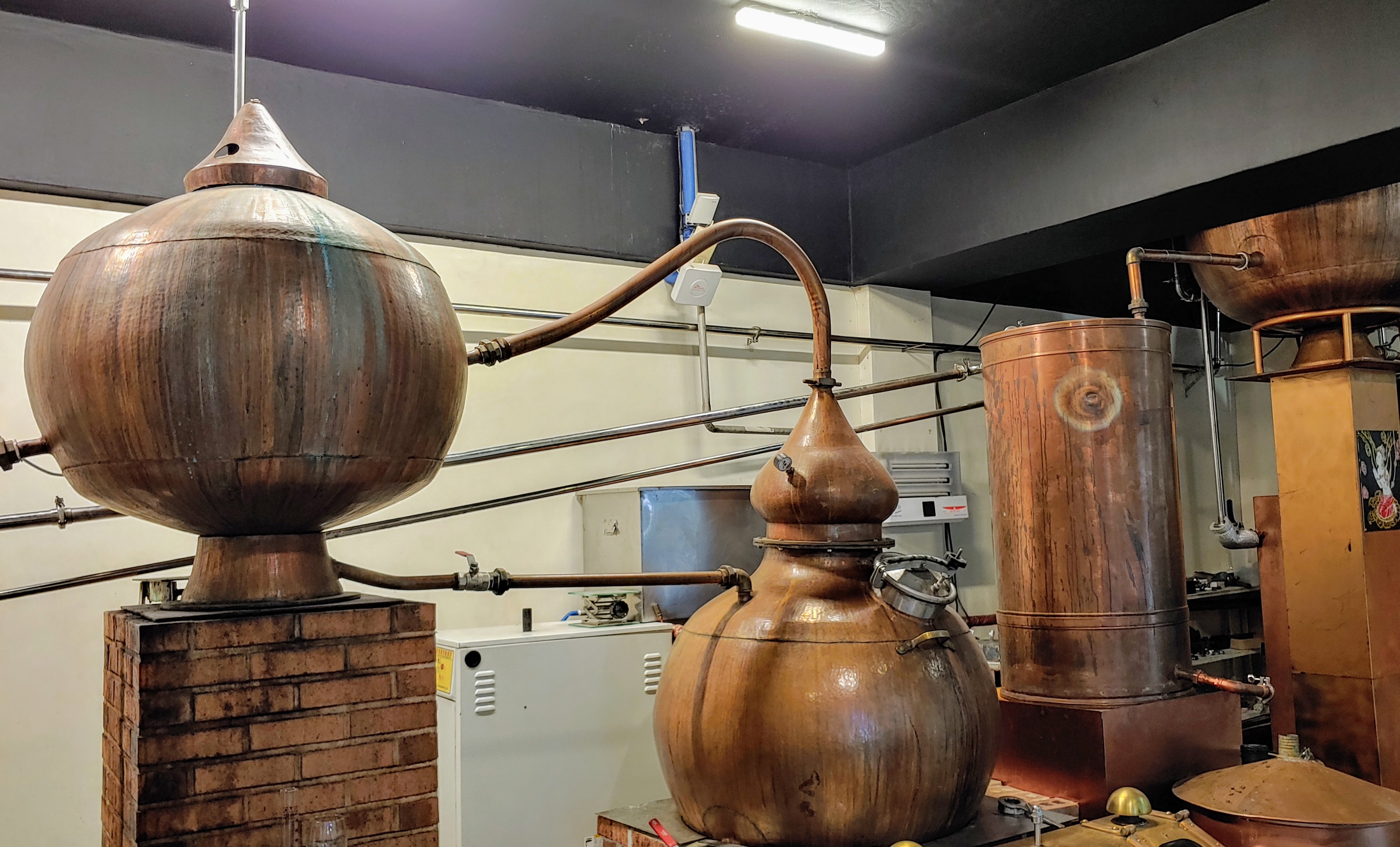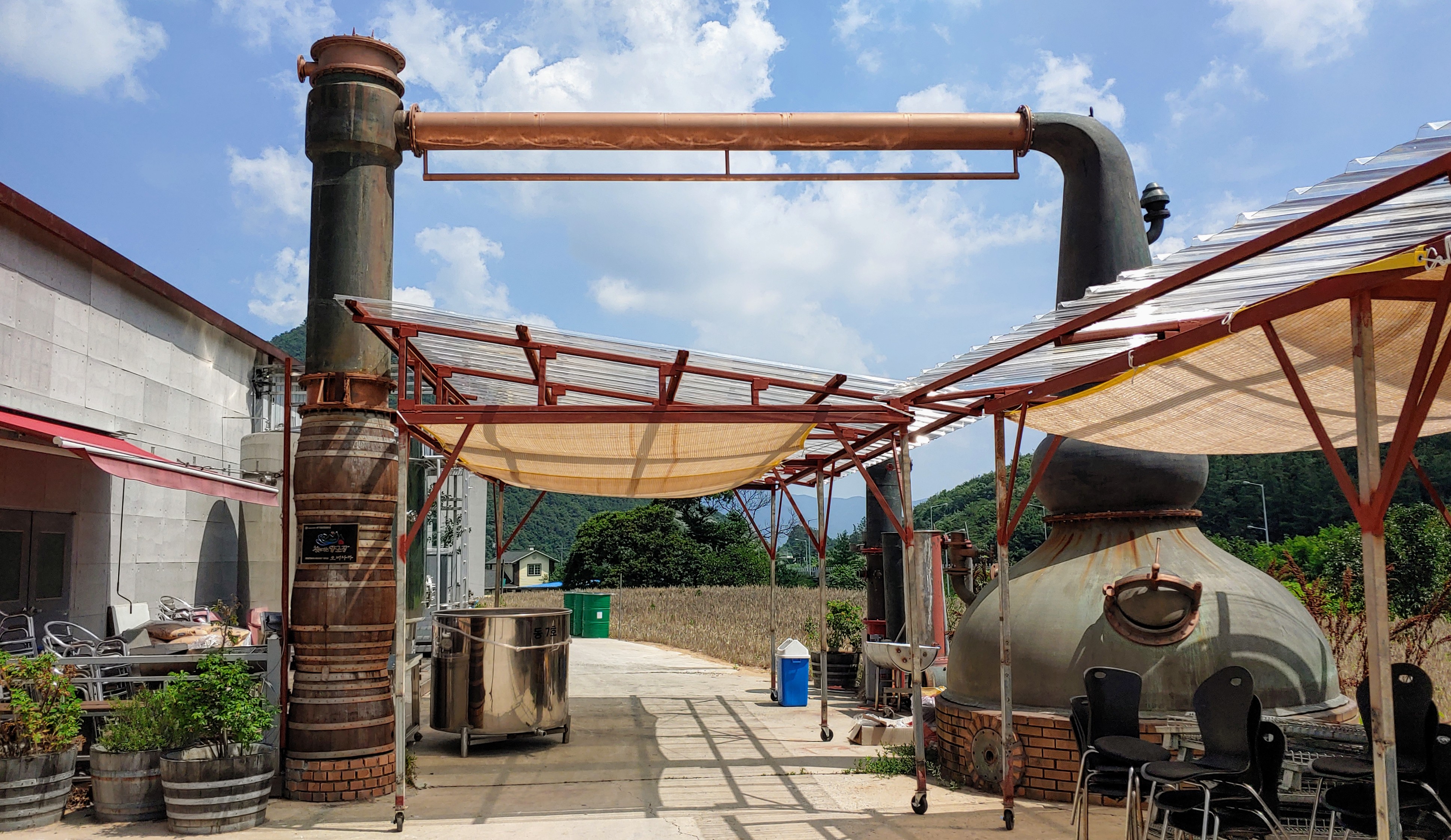 1차 증류기 옆에 조금 작은 2차 증류기가 있다. 모두 방짜유기처럼 직접 구리를 두드려 수제로 제작한 것이라고.
