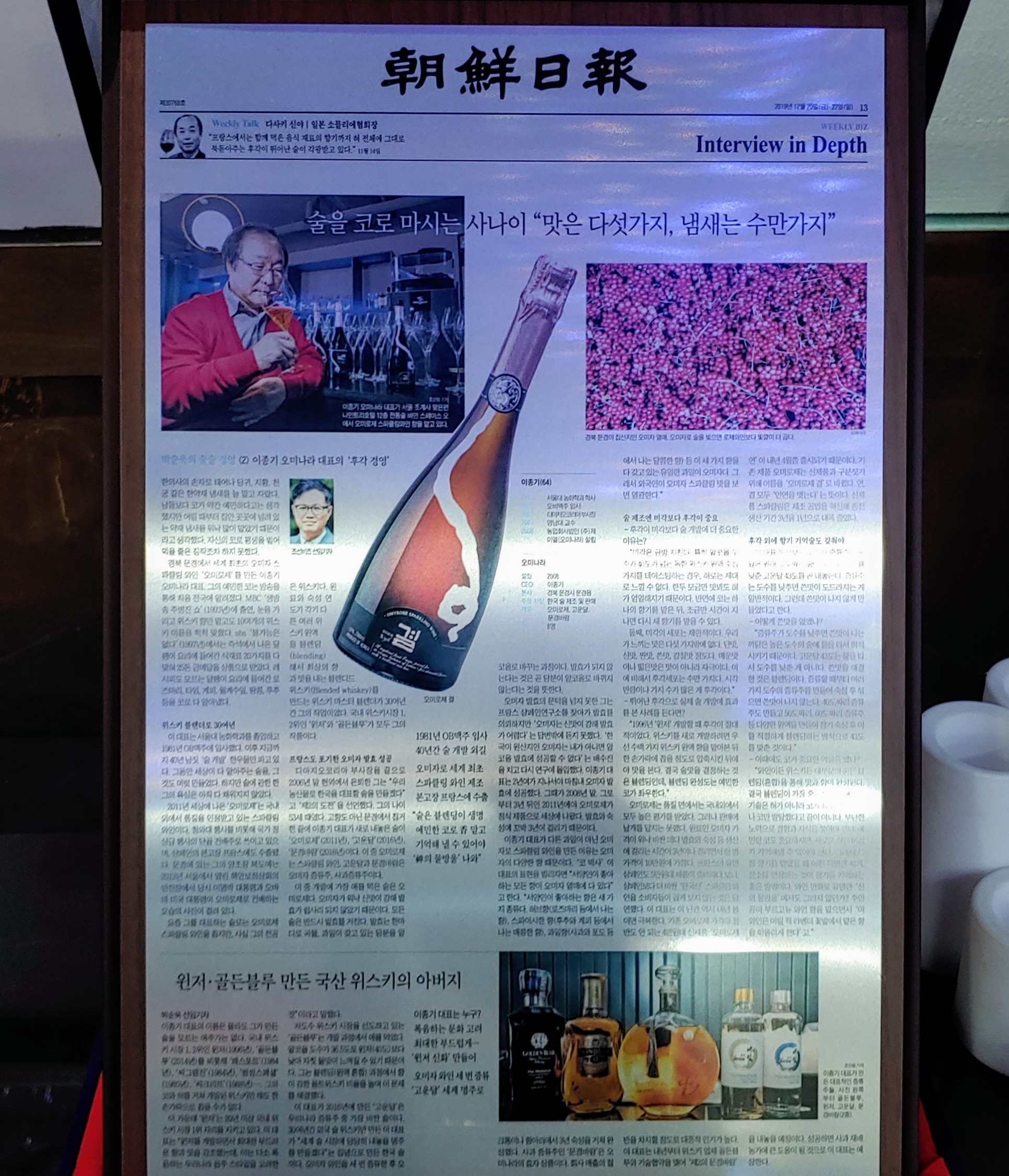 입구에 걸린 환영사와 이종기 교수님 약력. 패스포트와 시그램진, 윈저 등을 개발한 한국 위스키 업계의 대부 같은 분이다. 영국 유학 중 세계에 소개할 만한 국산 명주가 없는 것에 대해 부끄러움을 느꼈고, 직접 한국을 대표할 만한 술을 만들겠다는 결심을 하셨다고.