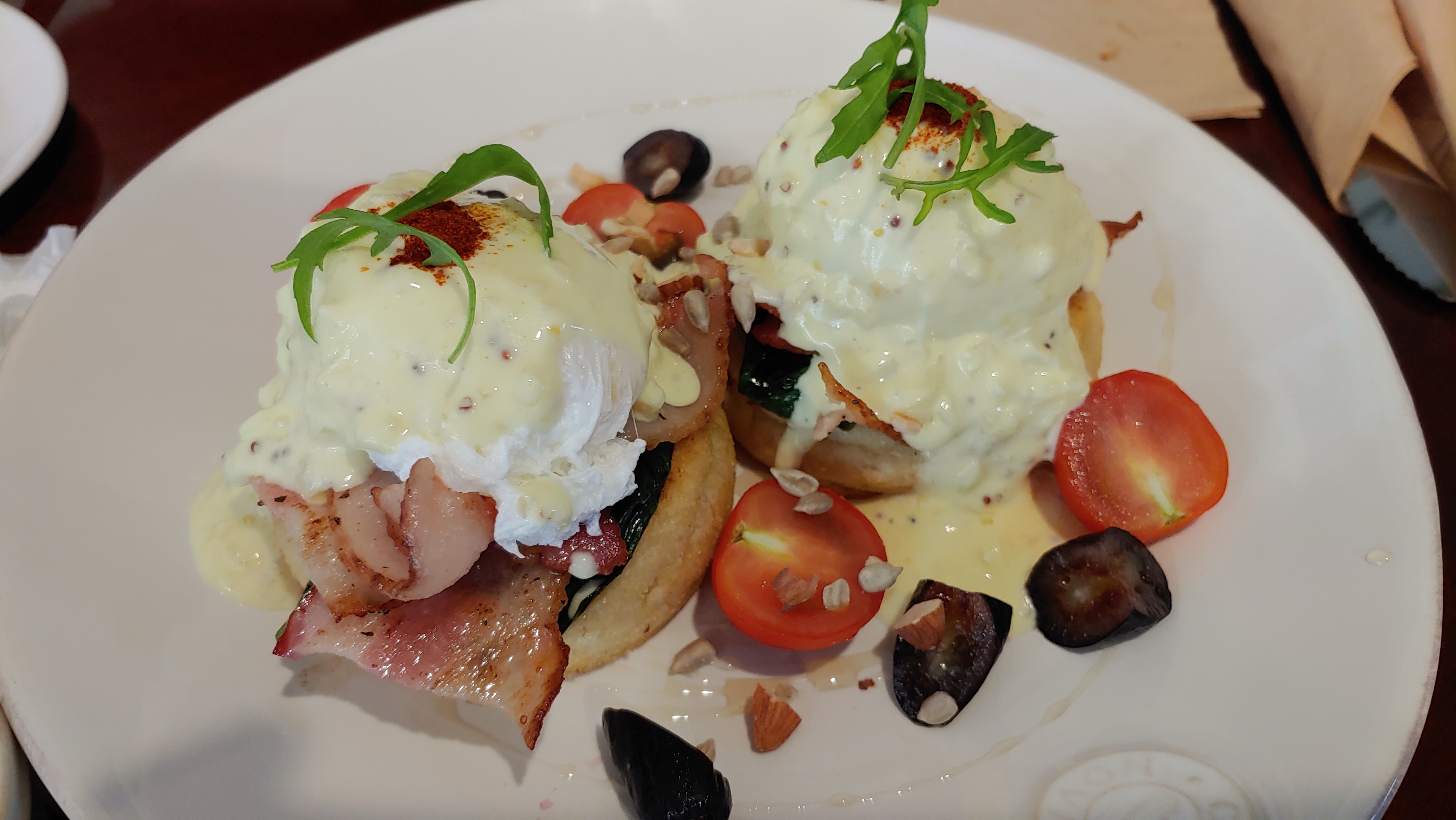 에그 베네딕트. 연어와 베이컨 중 선택할 수 있는데 우리는 베이컨을 골랐다.