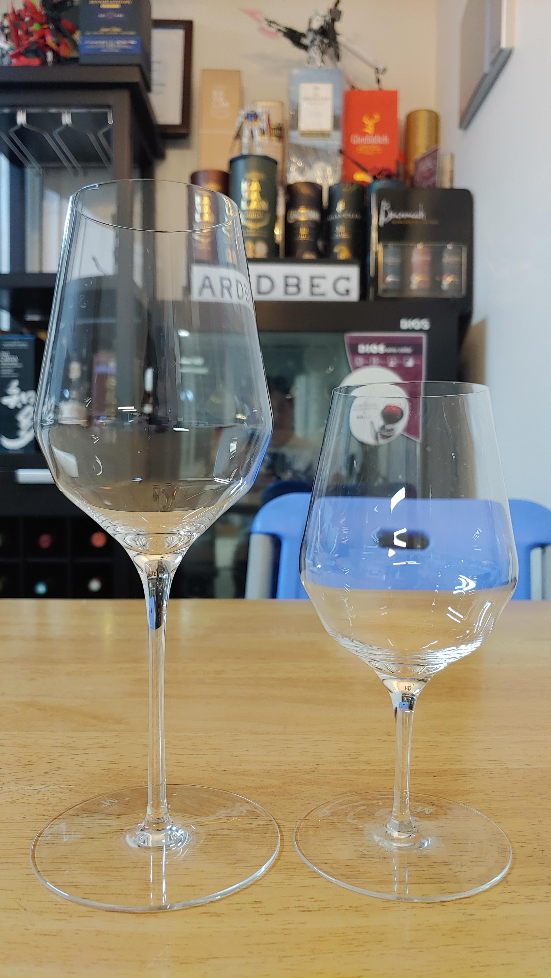 - 더블 벤드 화이트 : 높이 220mm, 용량 360ml, 어리고 상큼한 화이트와 로제 와인, 빈티지 샴페인 용.
