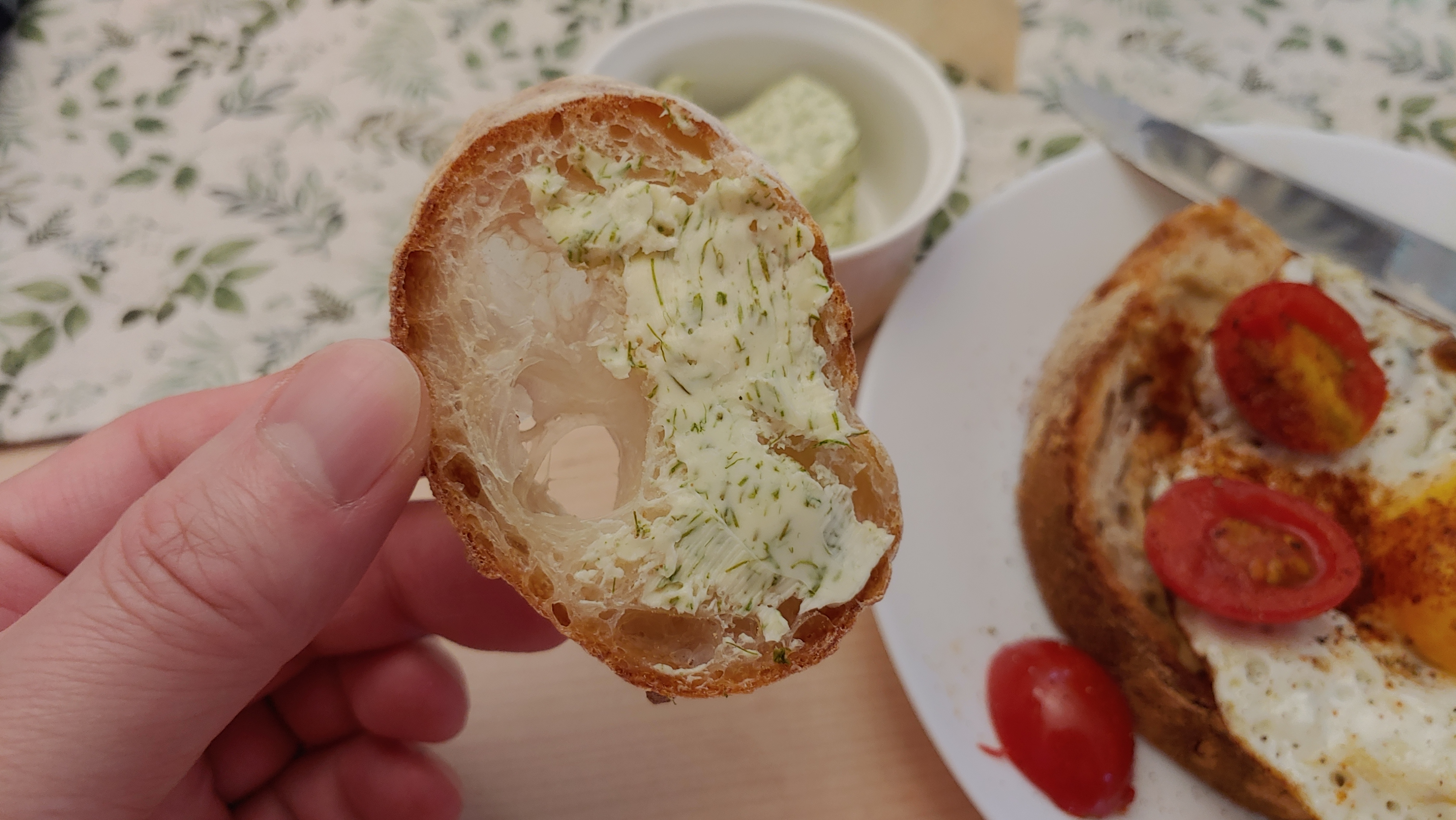 빵에 발라먹으니 구수/고소함과 해조류 특유의 향기가 섞여 삼각형 모양 김 센베가 떠오른다. 감태 생기면 시도해 보고 싶은 조합. 하지만 귀찮아서 안 될 거야...