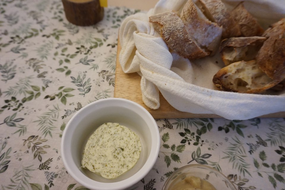 감태를 살짝 구워서 잘게 부숴 섞었다는데 진짜 일미다. 허브를 넣은 버터에서 아이디어를 얻었다고.