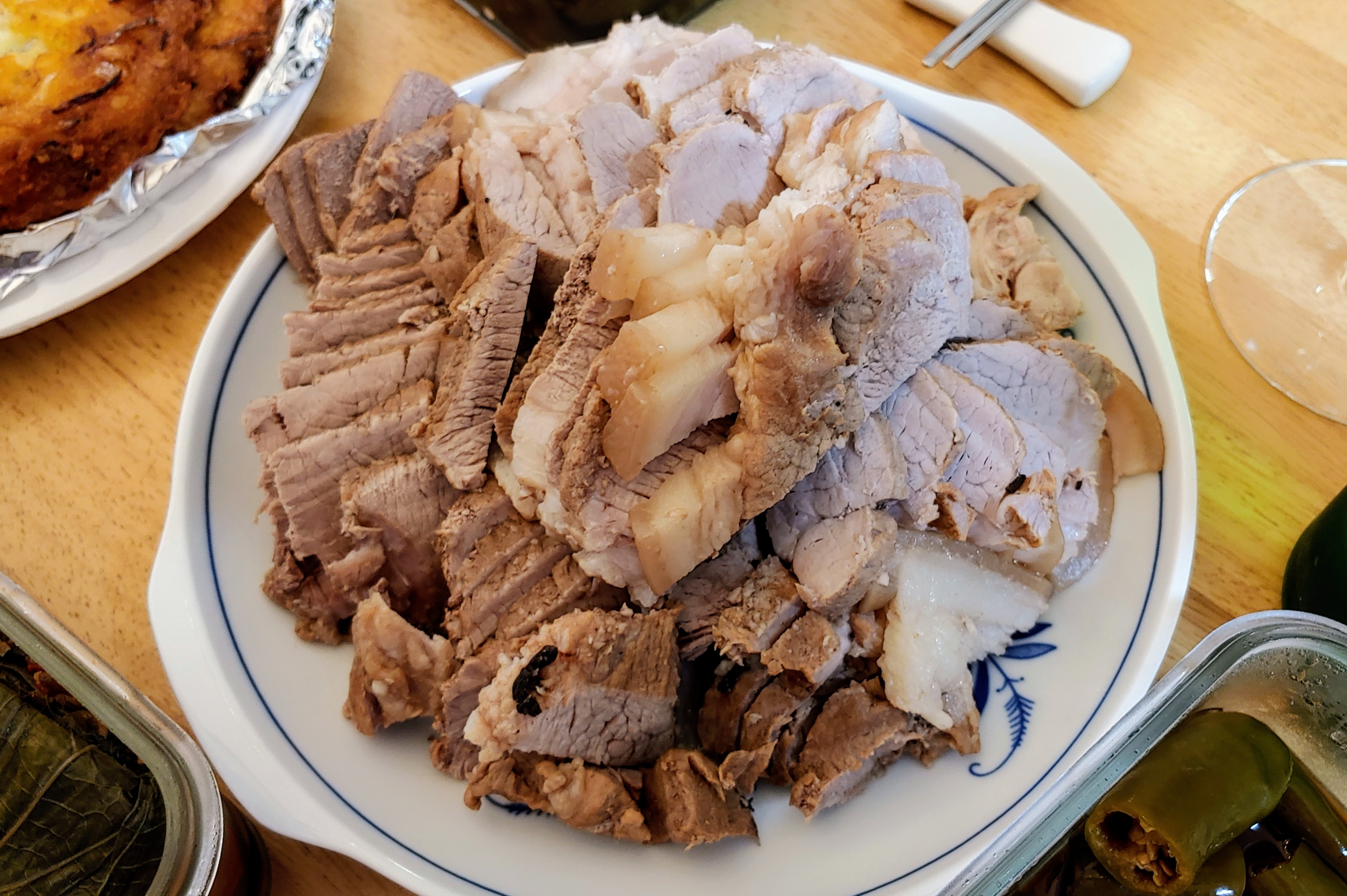 팔각을 넣어 집에서 삶은 돼지 수육.