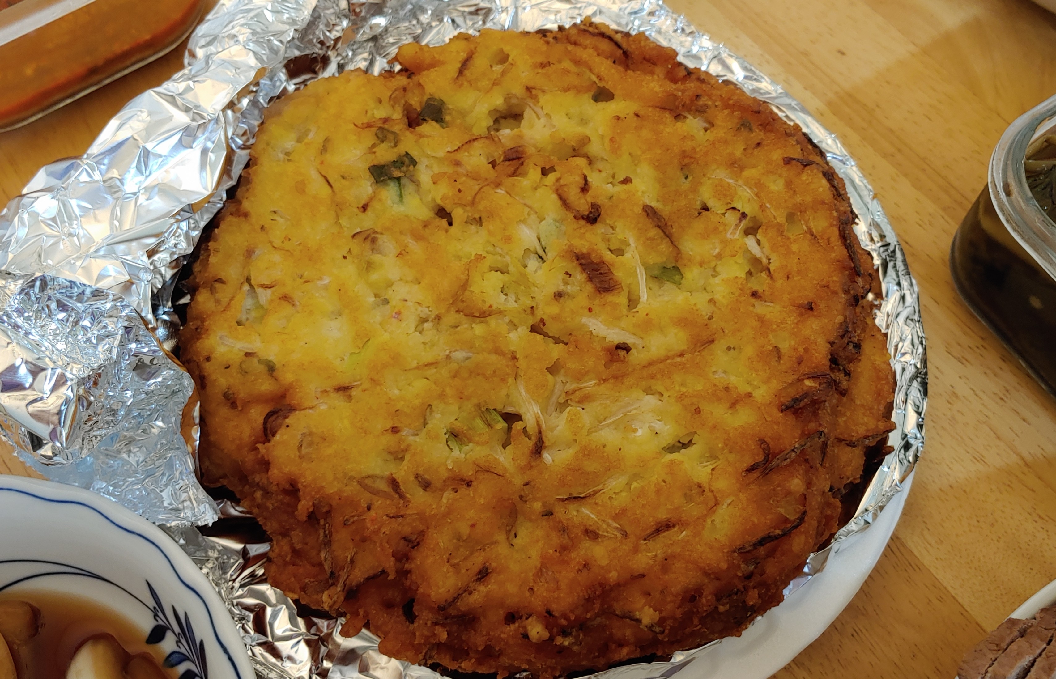 광장시장에서 사 온 두툼하게 부친 녹두전.
