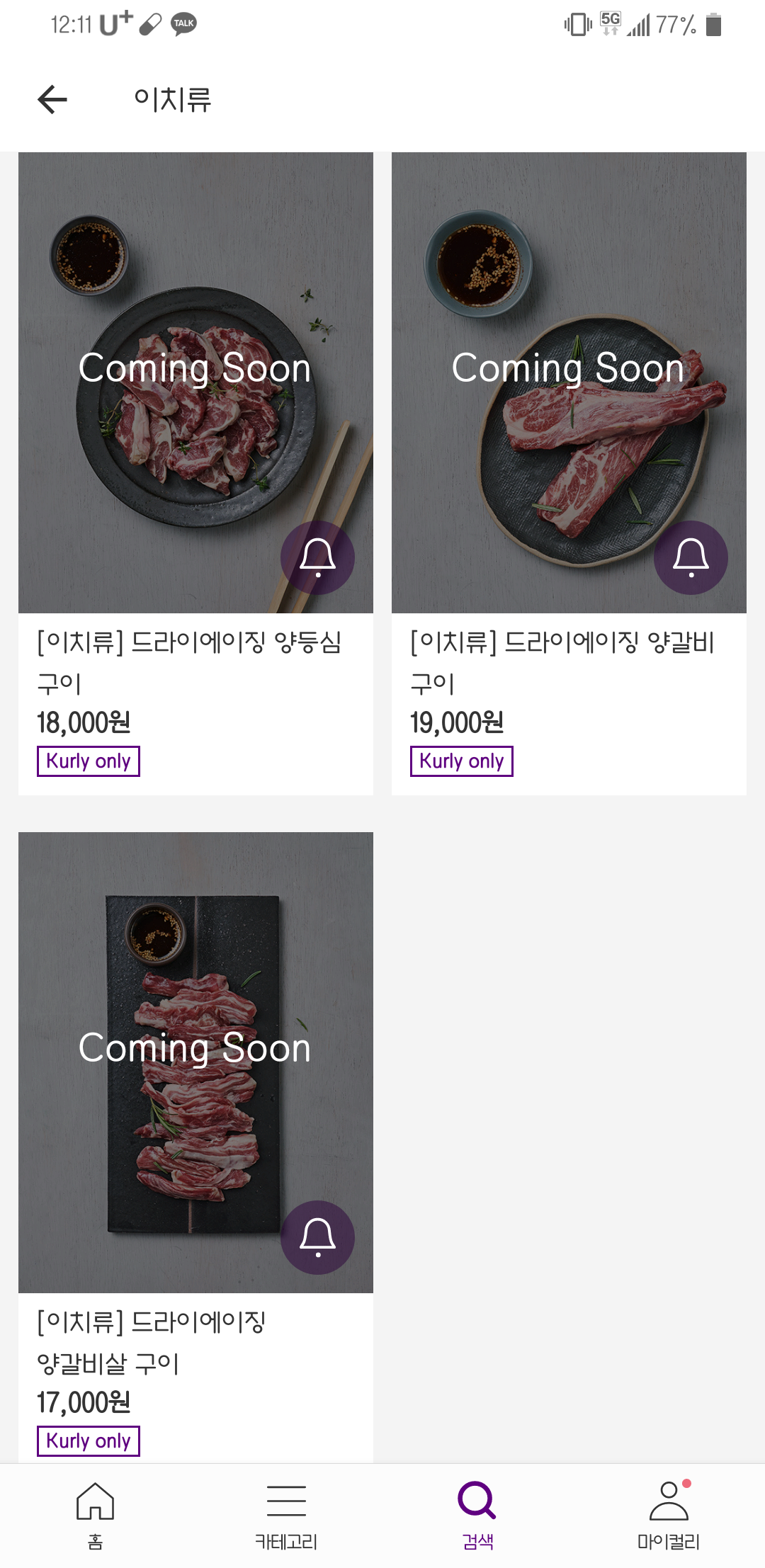 본론은 요거! 북해도식 양고기 징기스칸을 대표하는 이치류(一流)가 마켓 컬리에 입점했다. 그런데 항상 솔드 아웃이라 구매하기가 매우 어려운 건 함정. 이날도 양갈비는 솔드 아웃이고 (있는 걸 본 적이 없...) 양등심 구이와 양갈비살 구이를 하나씩 사고 싶었는데, 클릭하는 순간 양갈비살이 눈앞에서 솔드 아웃되었다.