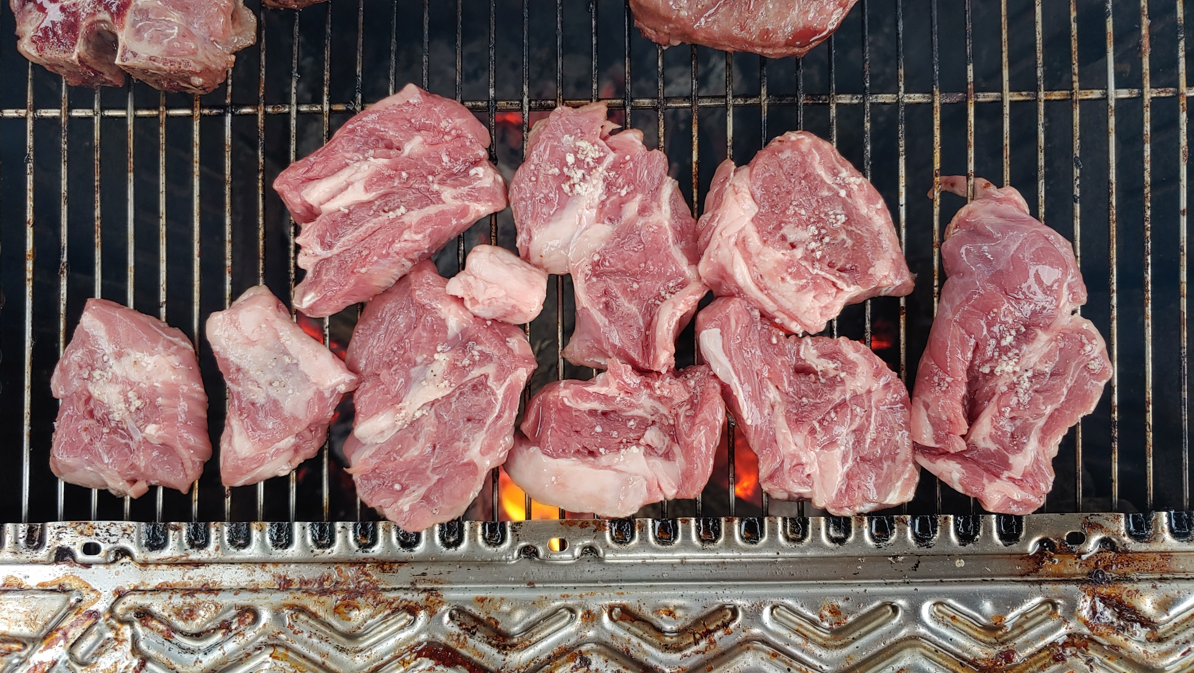 원래는 징기스칸 전용 팬에 양고기 지방을 올려 녹인 후 파, 양파 등과 함께 노릇하게 구워 먹는 게 오리지널이지만, 숯불에 구워도 맛있을 것 듯. 좋은 고기니까... ㅋㅋㅋㅋㅋ