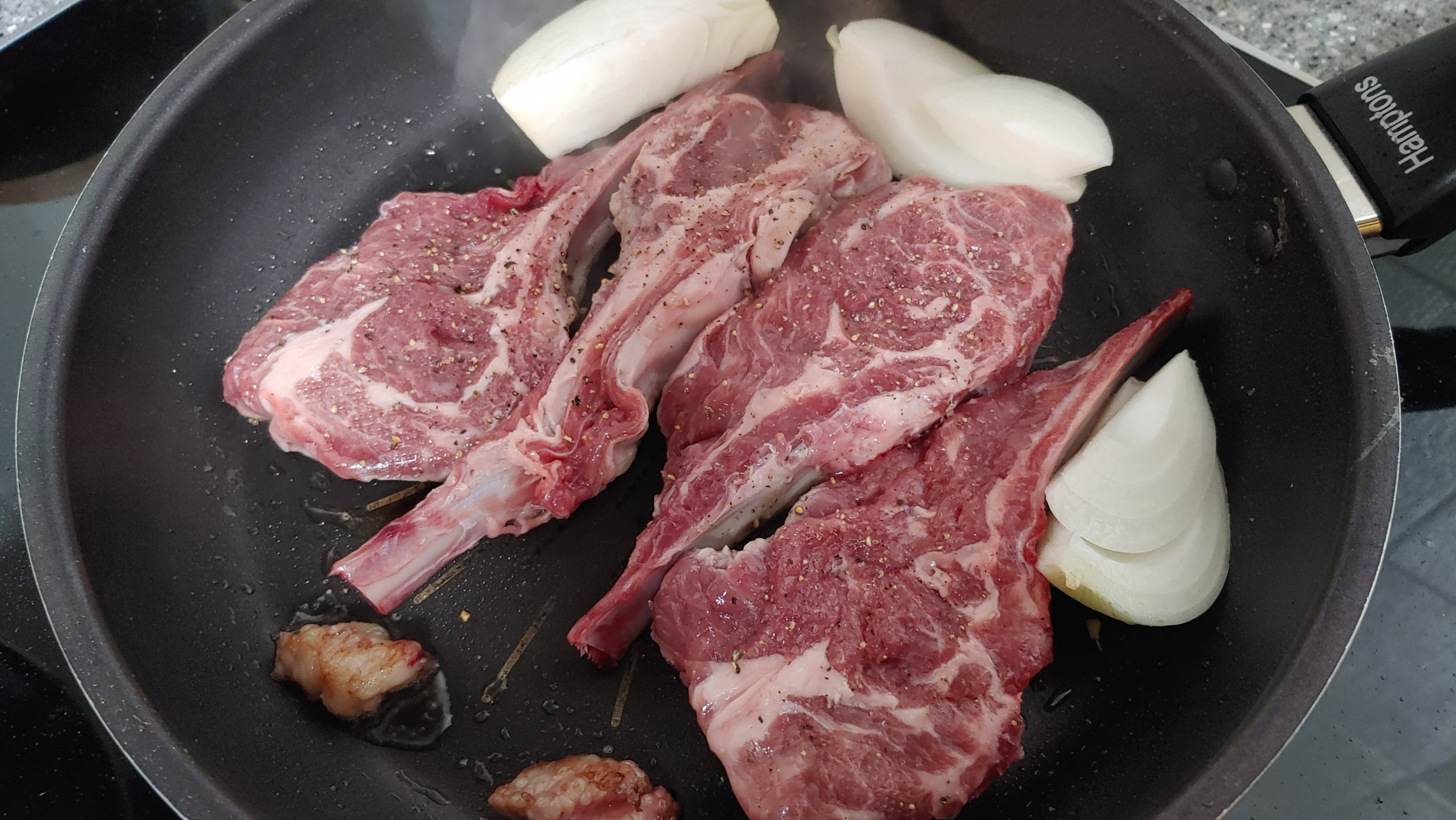 때깔이 좋구나야~ 양기름 살짝 바른 후 양갈비를 올리고 소금 후추만 살짝.