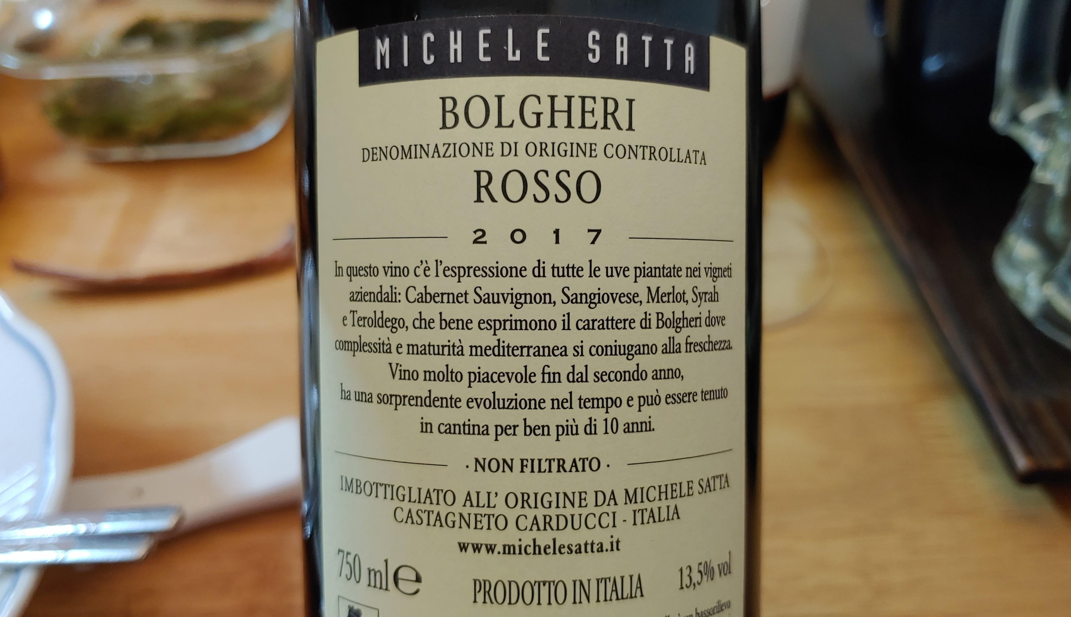 미켈레 사타 볼게리 로쏘(Michele Satta Bolgheri Rosso). 미켈레 사타의 기본급 와인이다.