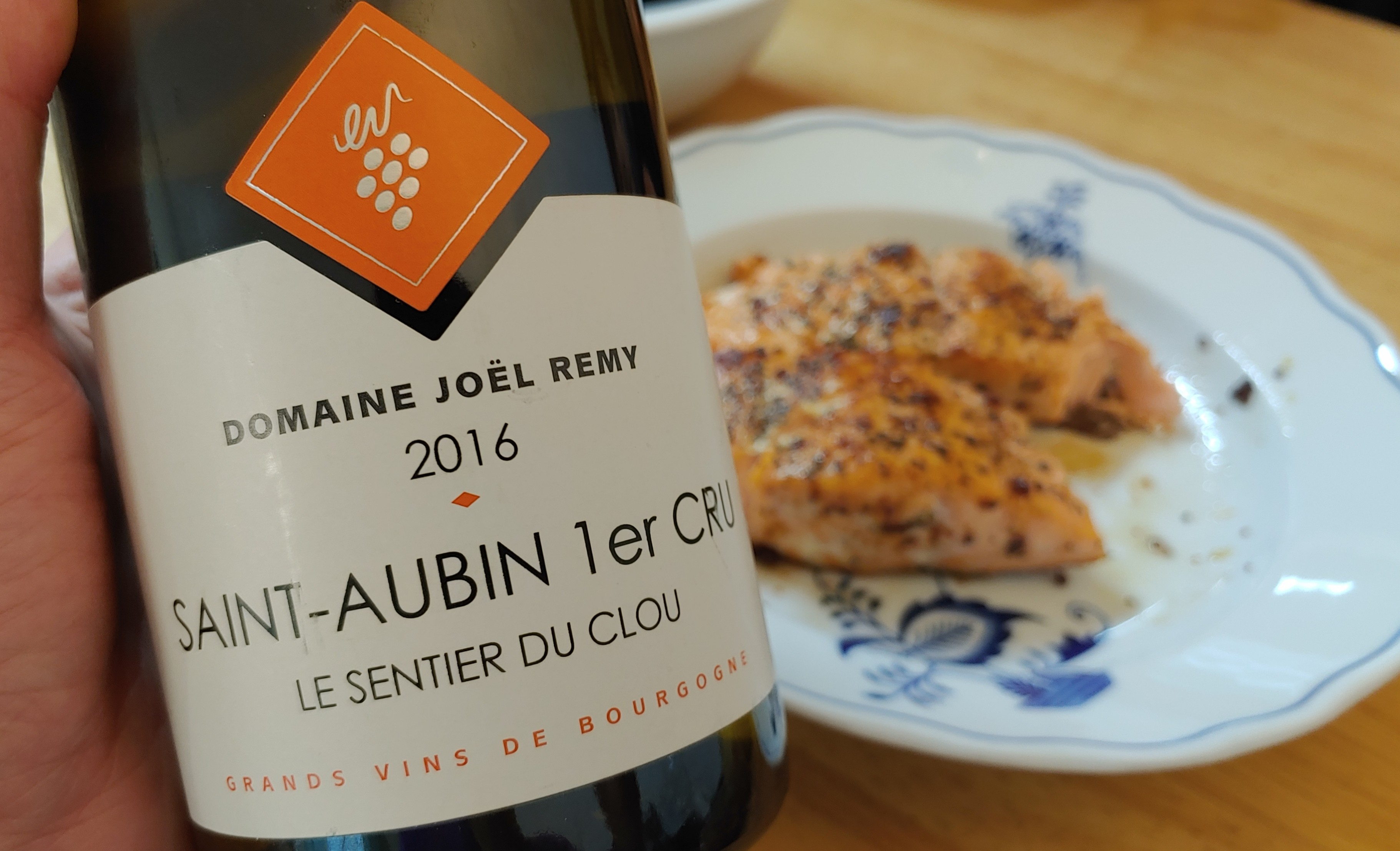 어쩔 수 없이 mid-term 셀러링용으로 박아 두었던 부르고뉴를 열었다. 도멘 조엘 레미 생 토방 프르미에 크뤼 르 상띠에 뒤 끌루(Domaine Joel Remy, St.-Aubin 1er Cru Le Sentier du Clou). 연초 와인앤모어 할인 때 샀던 네 병 중 마지막 병이다.