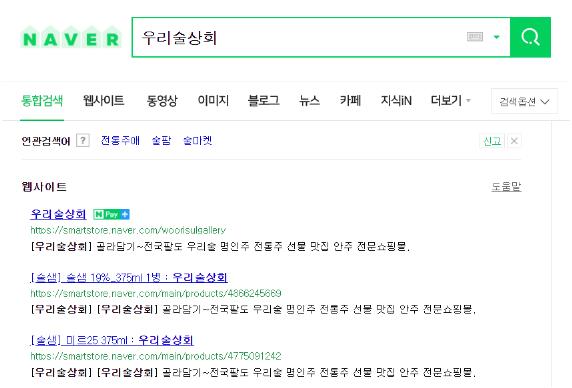 네이버에서 '우리술상회' 검색하면 요렇게 맨 위에 뜹니다. 쉽게 찾아들어갈 수 있어요.
