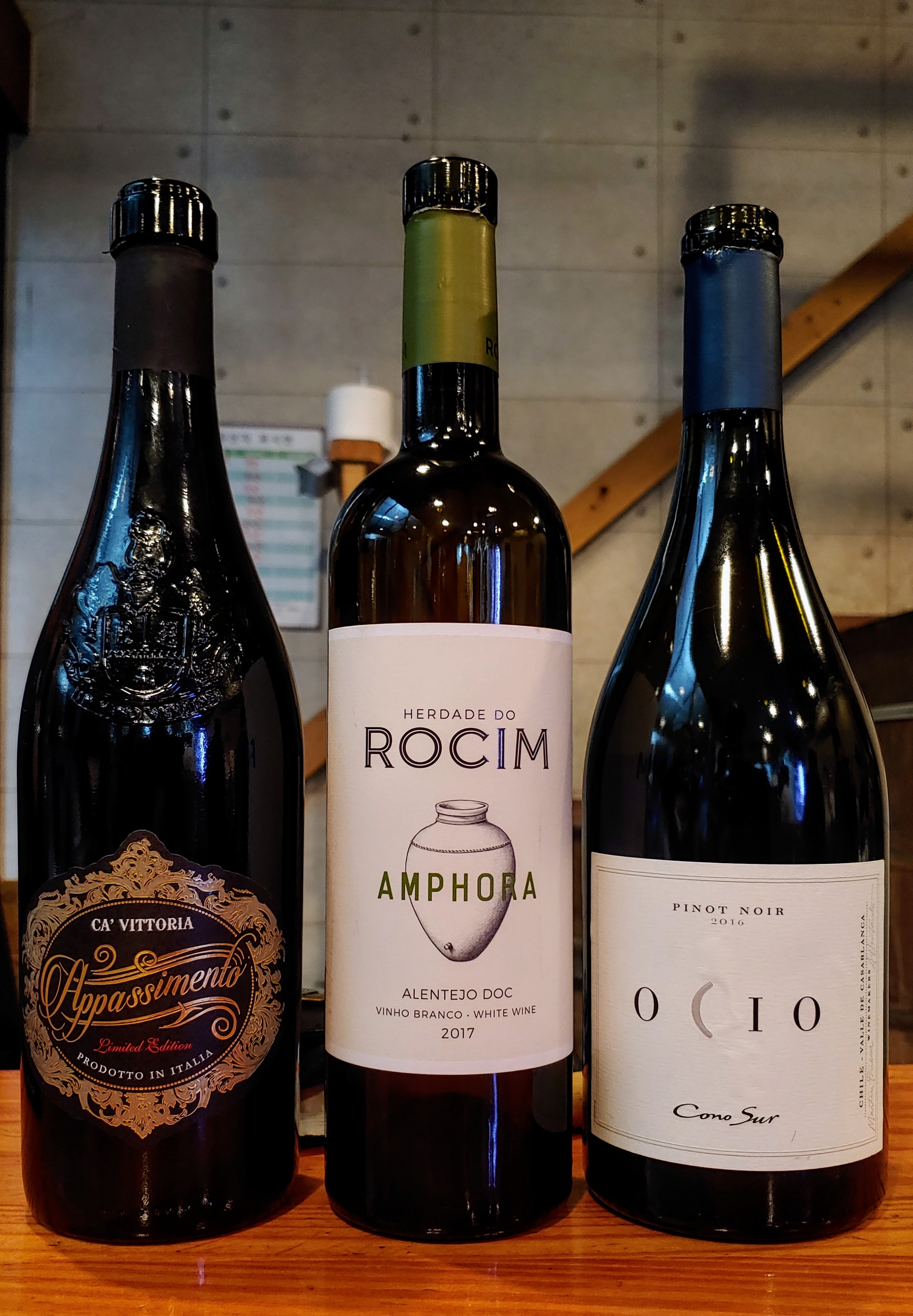 함께한 와인 3종. 칠레 피노 누아를 대표하는 코노 수르 오시오(Cono Sur Ocio)는 이날도 멋진 모습을 보였고, 풀리아에서 날아온 아파시멘토(Appassimento) 와인은 육류와 괜찮은 궁합을 보여주었다. 조만간 요수정에 리스트업 될 지도? ㅋㅋㅋ