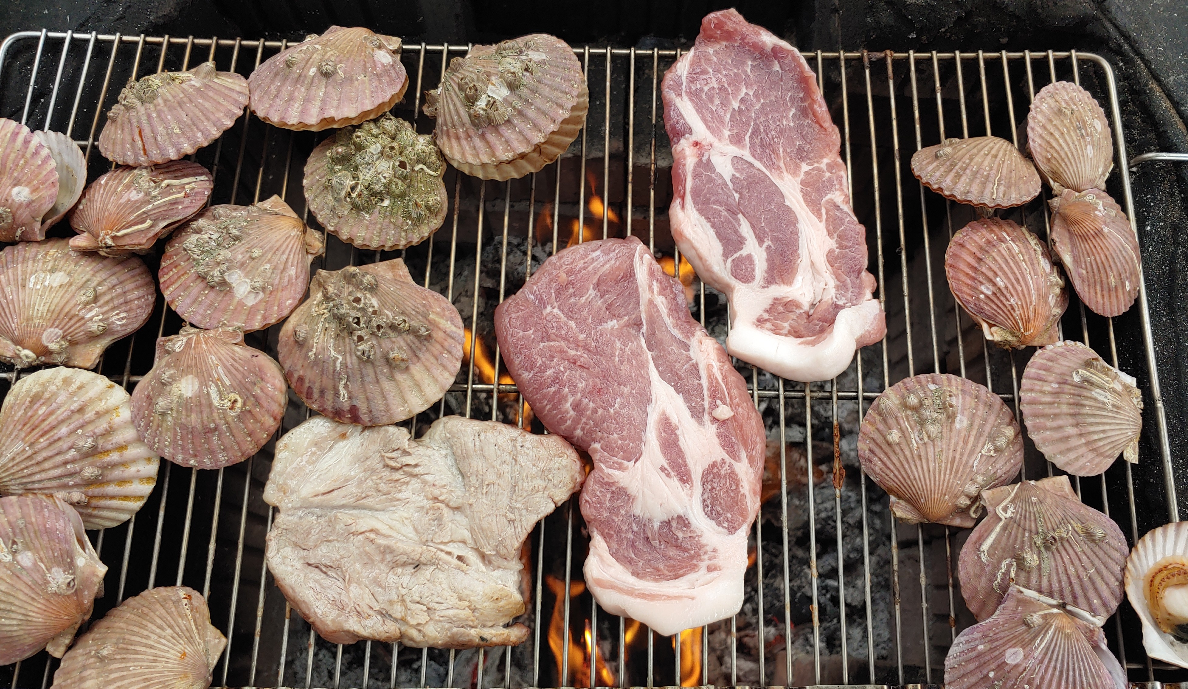구리 수산물시장에서 가리비랑 조개 사다가,