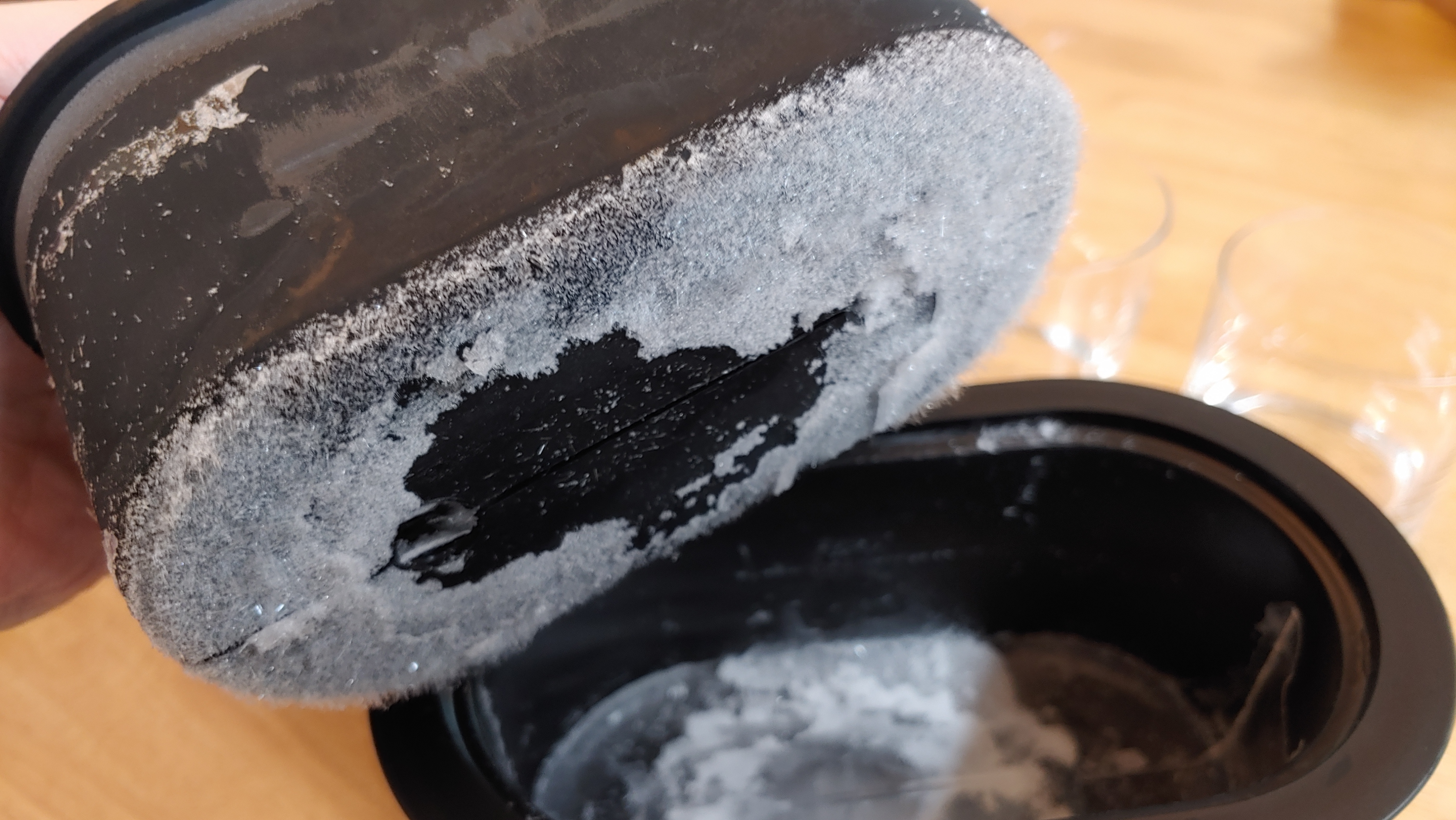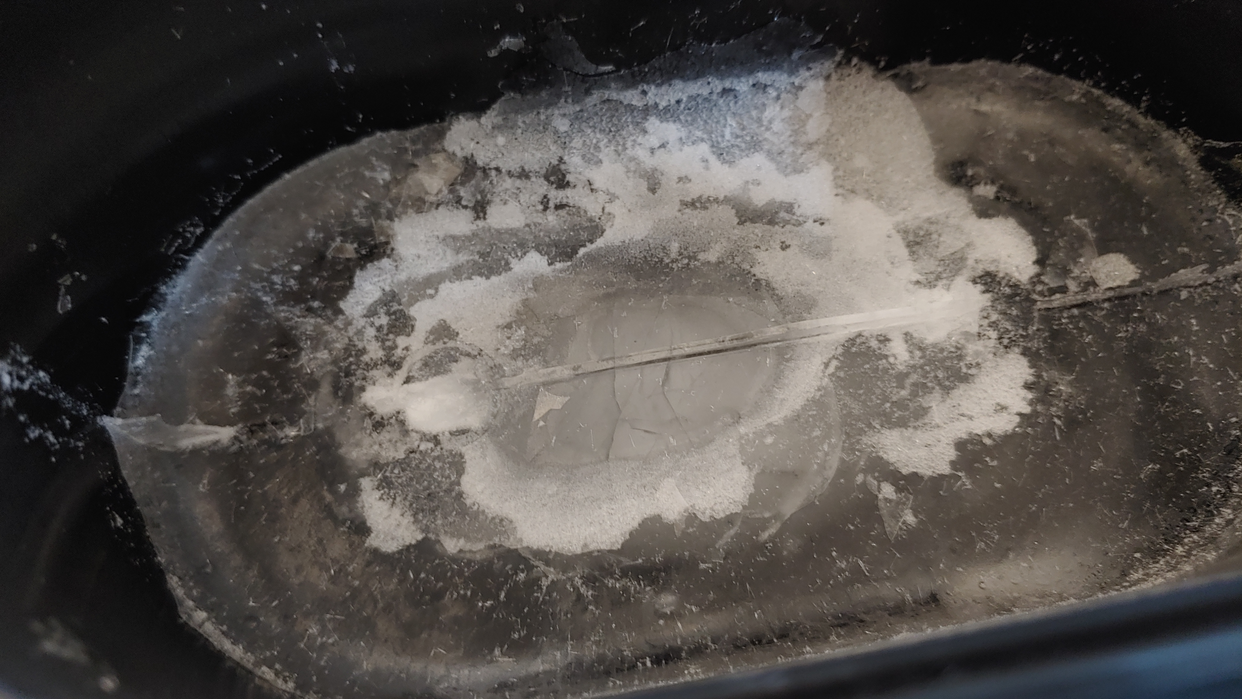물 투입구로도 얼음이 빼꼼히 머리를 내밀고 있네요.