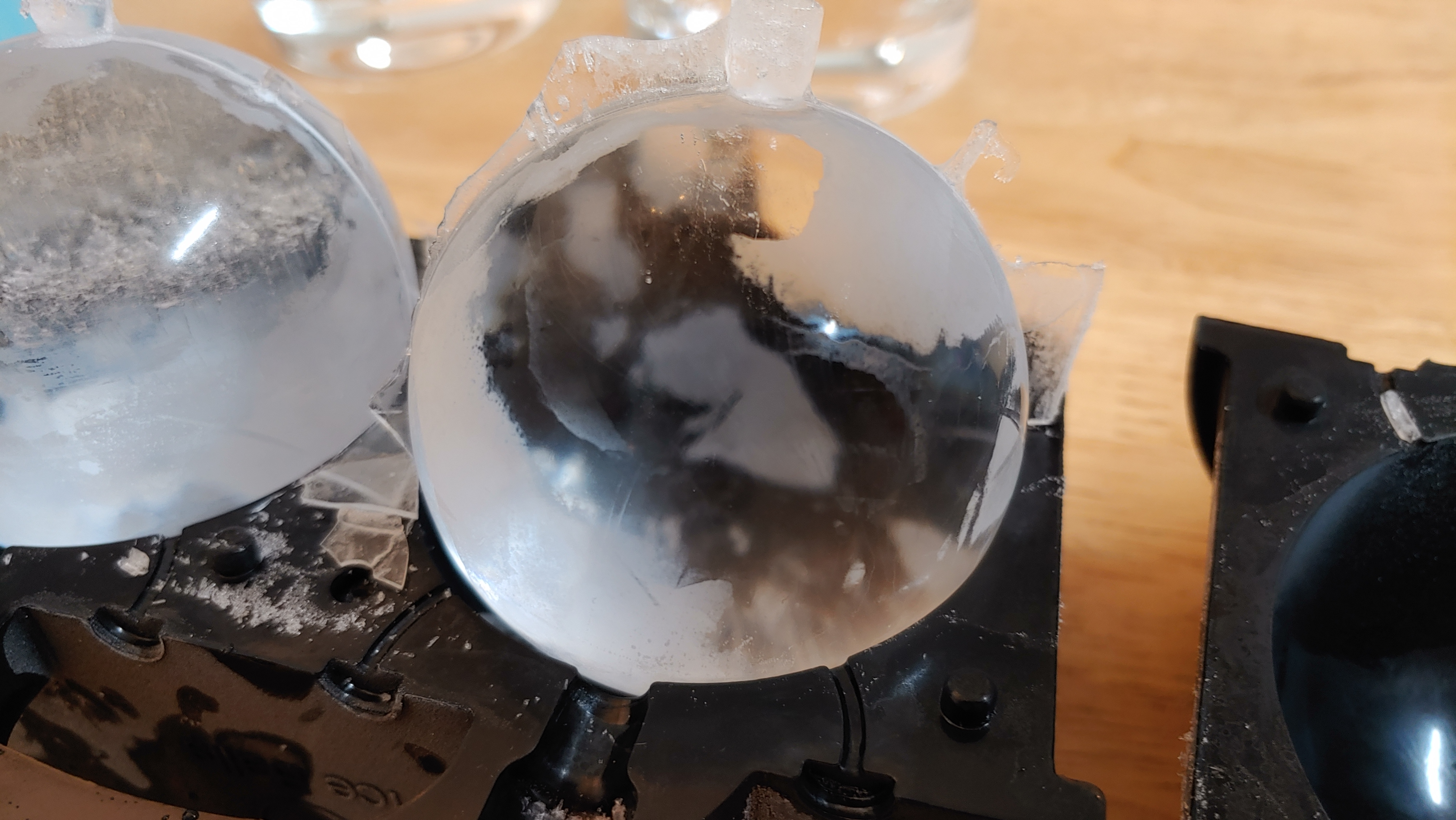 다른 한 얼음은 수정구처럼 투명하게 잘 얼었습니다.