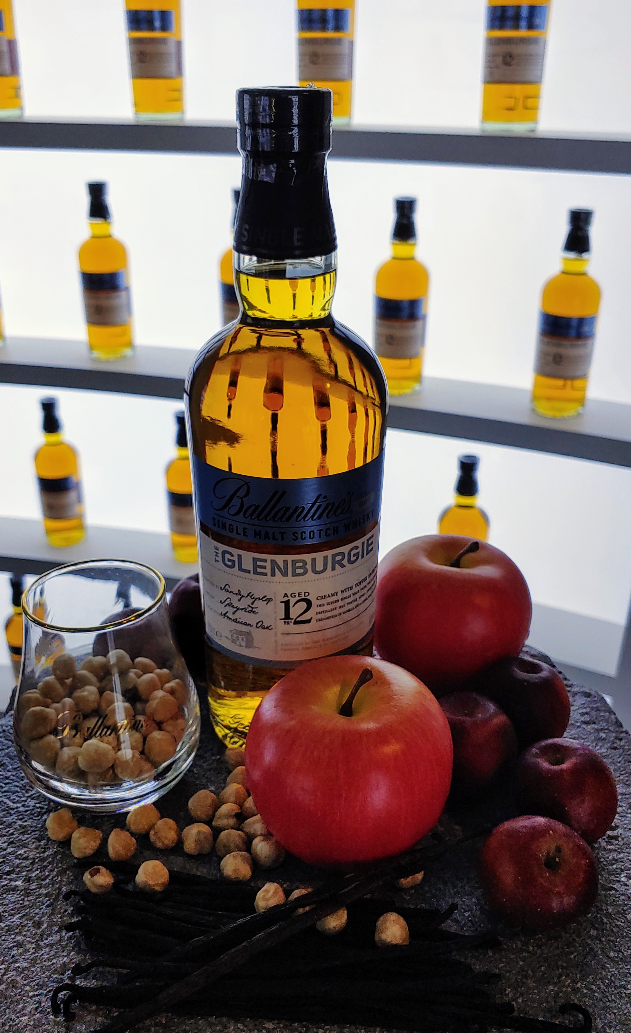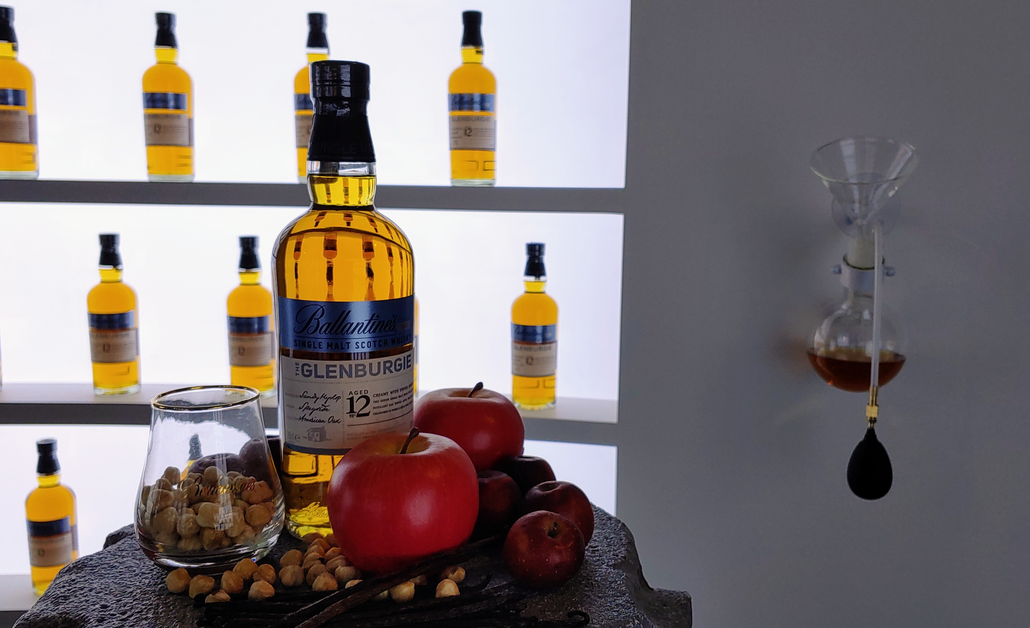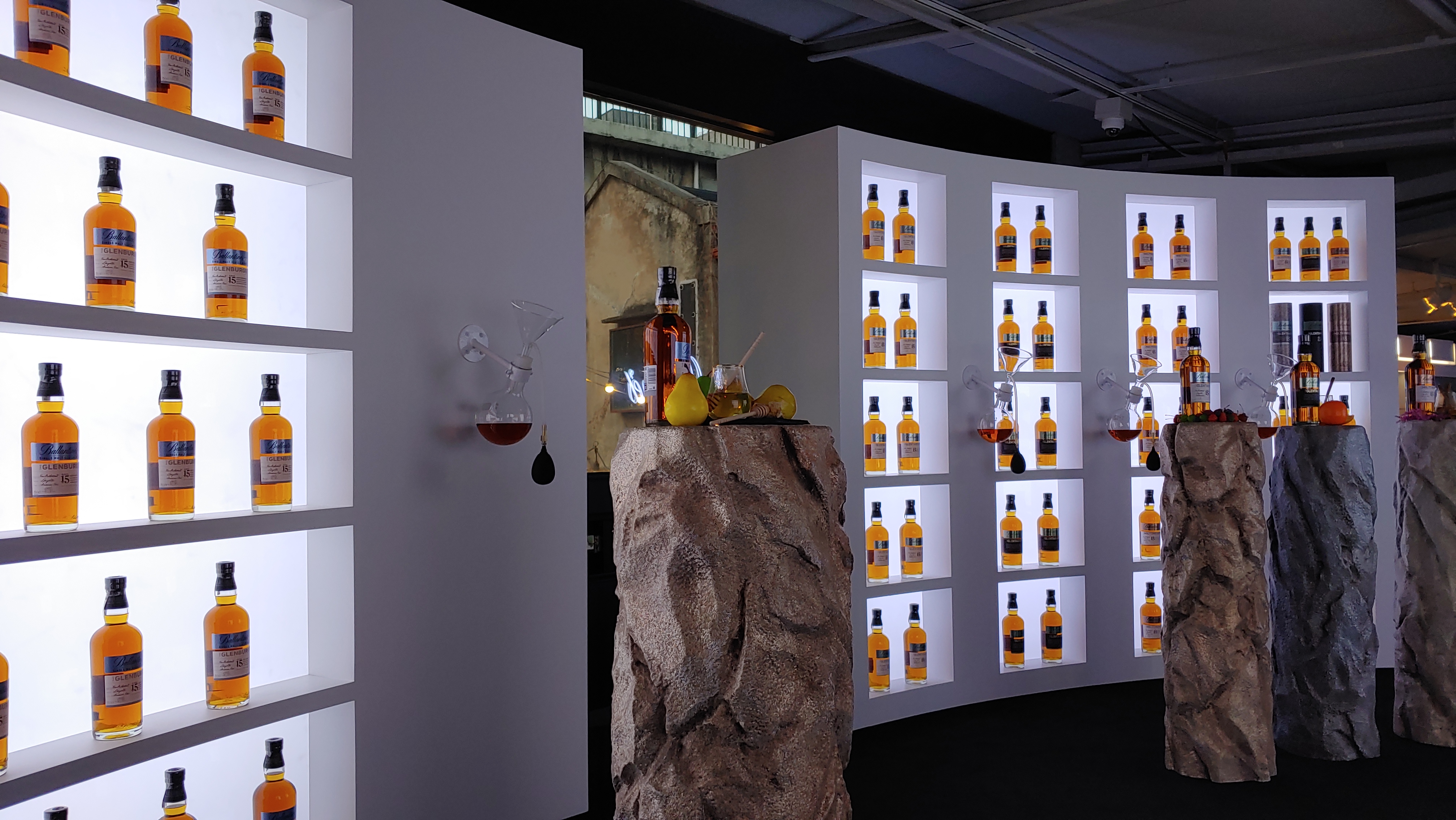 글렌버기 12년은 사과와 자두, 헤이즐넛, 바닐라 등과 함께 디스플레이되어 있습니다. 같이 전시된 것들은 각 위스키의 대표적 플레버 프로파일을 시각화한 것이라고 할 수 있습니다. 관람객들은 은연중에 각 위스키의 풍미를 인식할 수 있는 거죠.