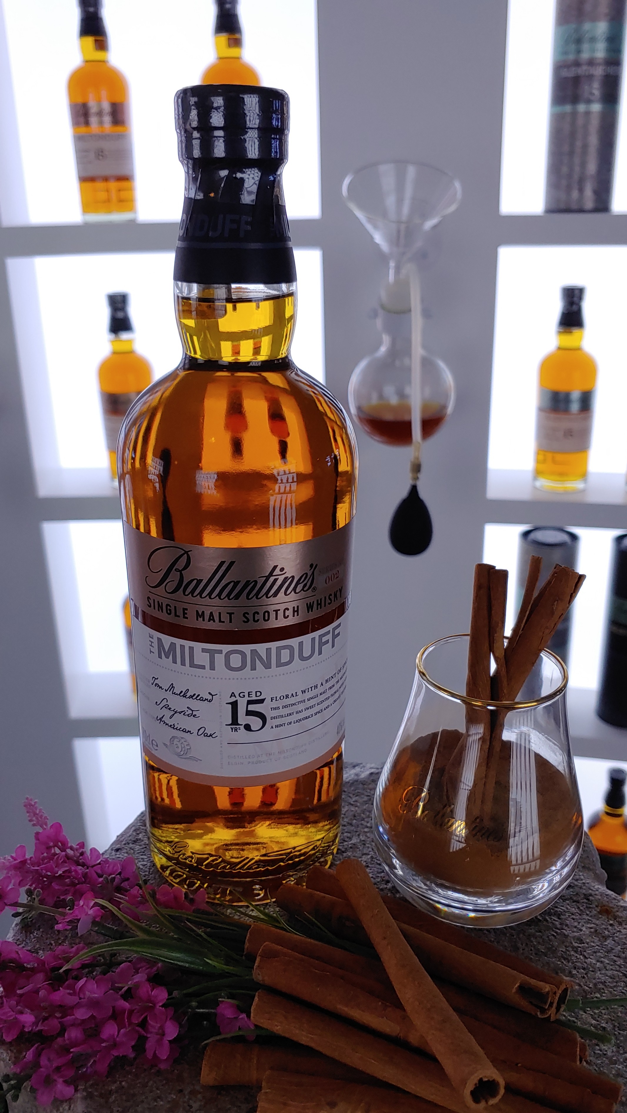 밀튼더프 15년은 시나몬과 이름을 알 수 없는(?) 꽃다발입니다. 공식 설명은 '오렌지 과즙의 향긋함, 계피의 스파이시함, 화사한 꽃 향기'입니다.