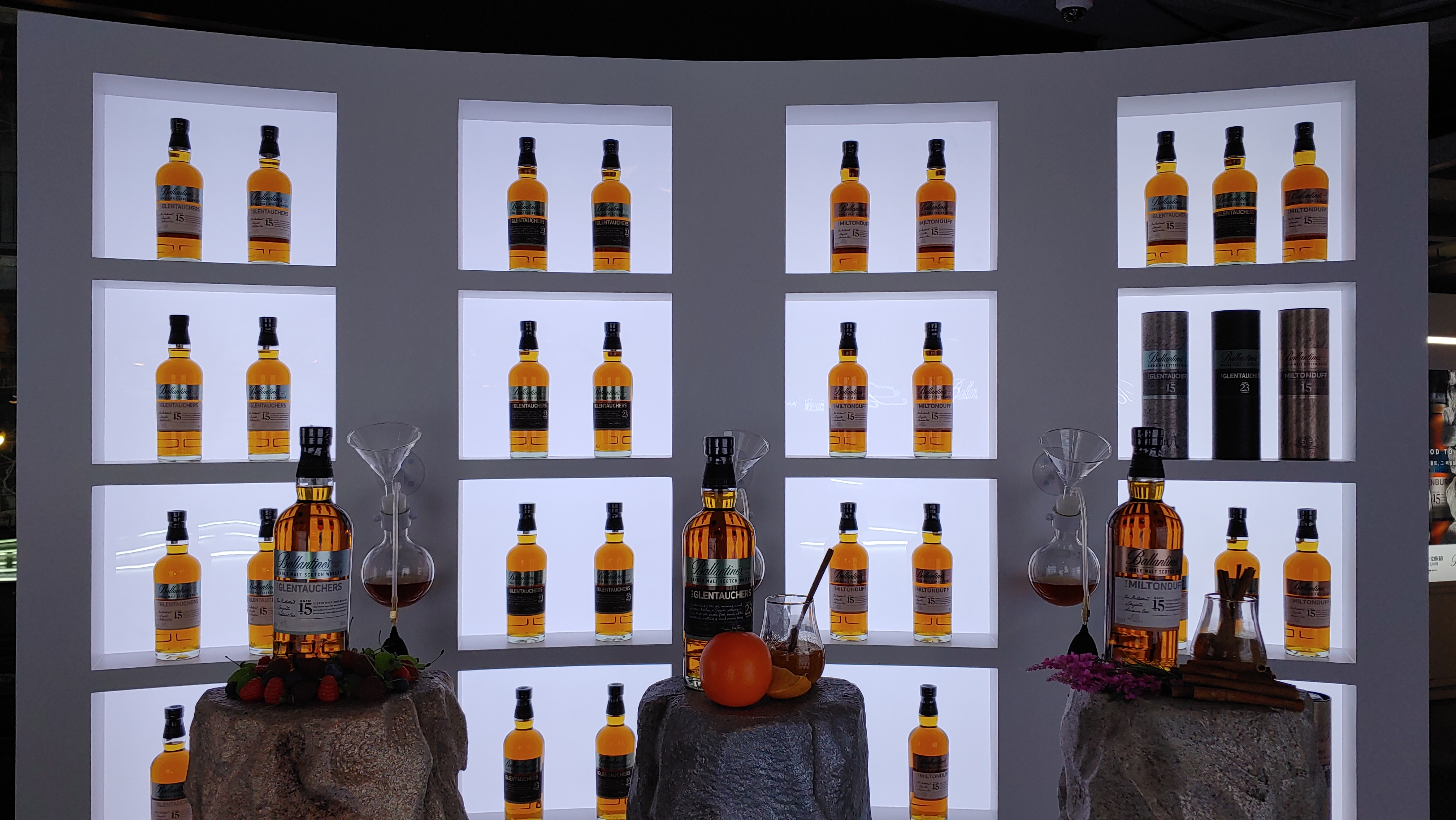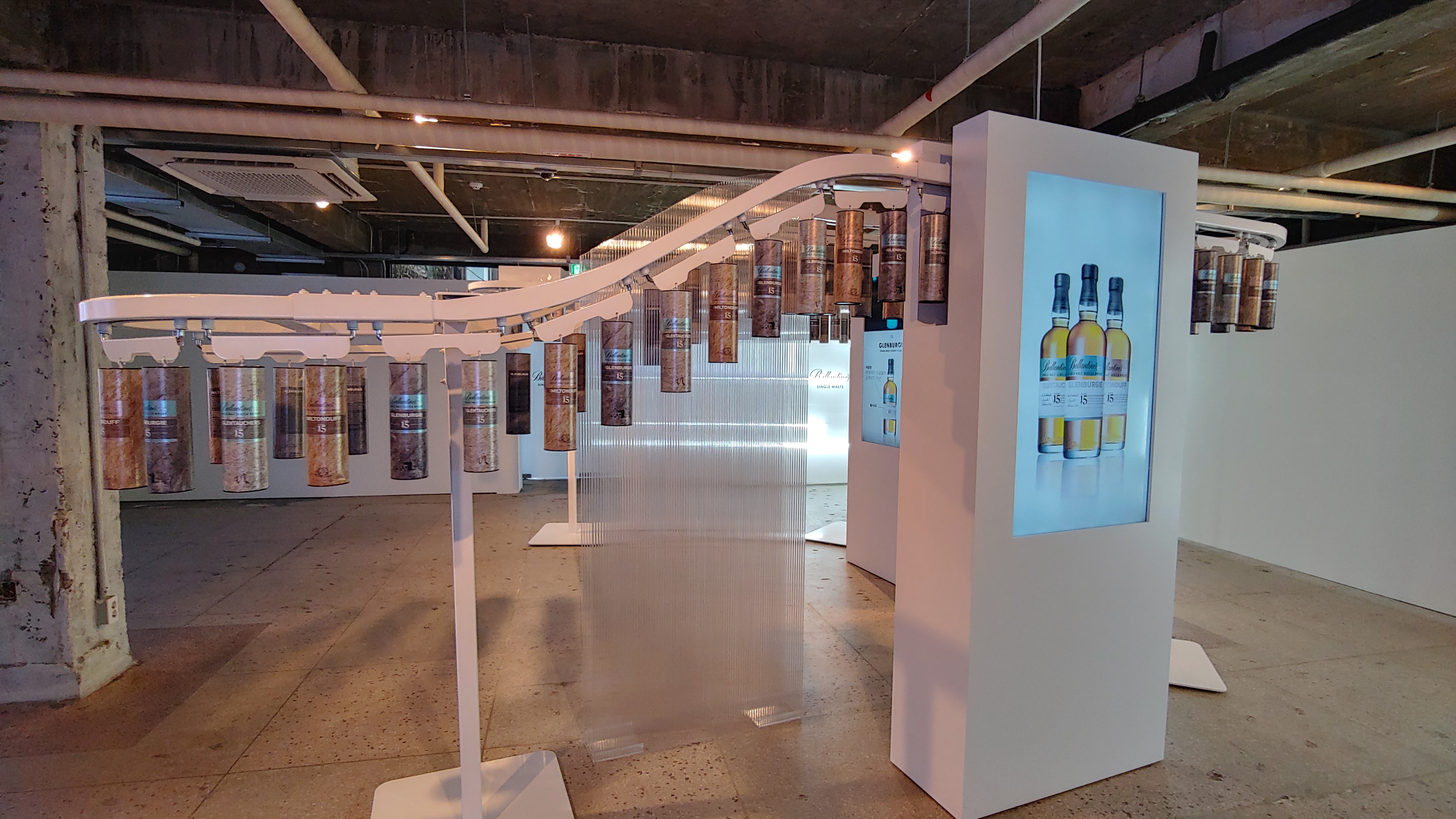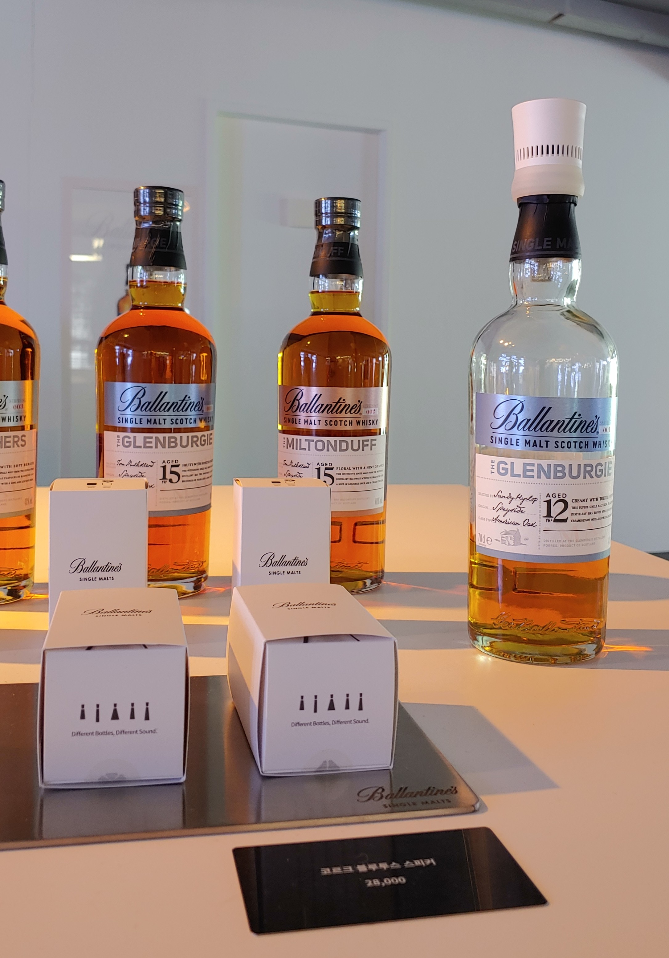 다음 섹션에는 발렌타인 싱글 몰트 실물들이 전시돼 있었습니다.